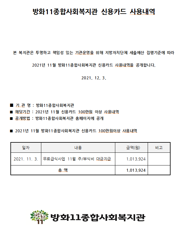 | 2021년 11월 업무추진비 (0) | 2021.12.03 |