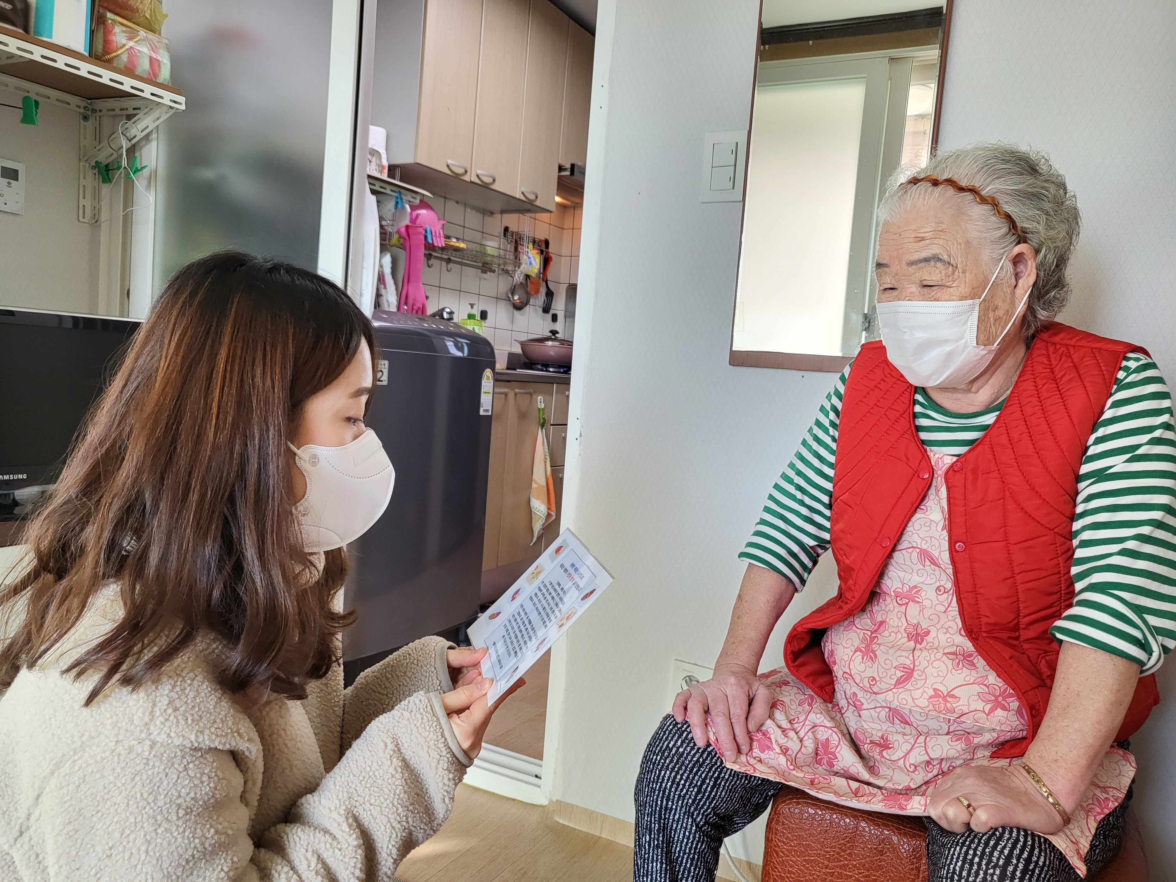 같은 층에 거주하시는 어르신이 함께 가셔서 인사 나누면 좋을 것 같아요.”