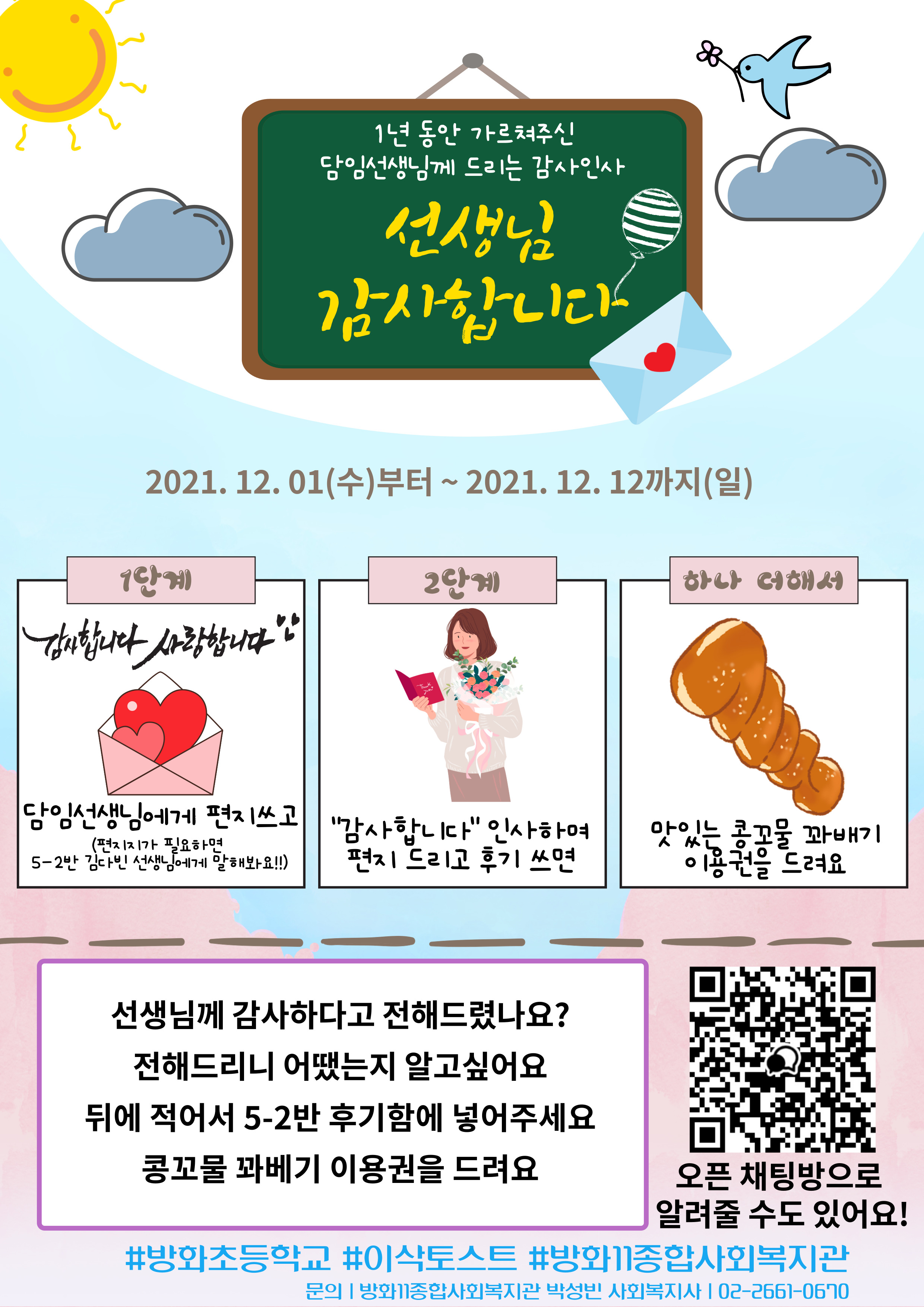 이번 캠페인으로 선생님도, 학생도 좋은 추억을 가지고 올해를 마치면 좋겠습니다.