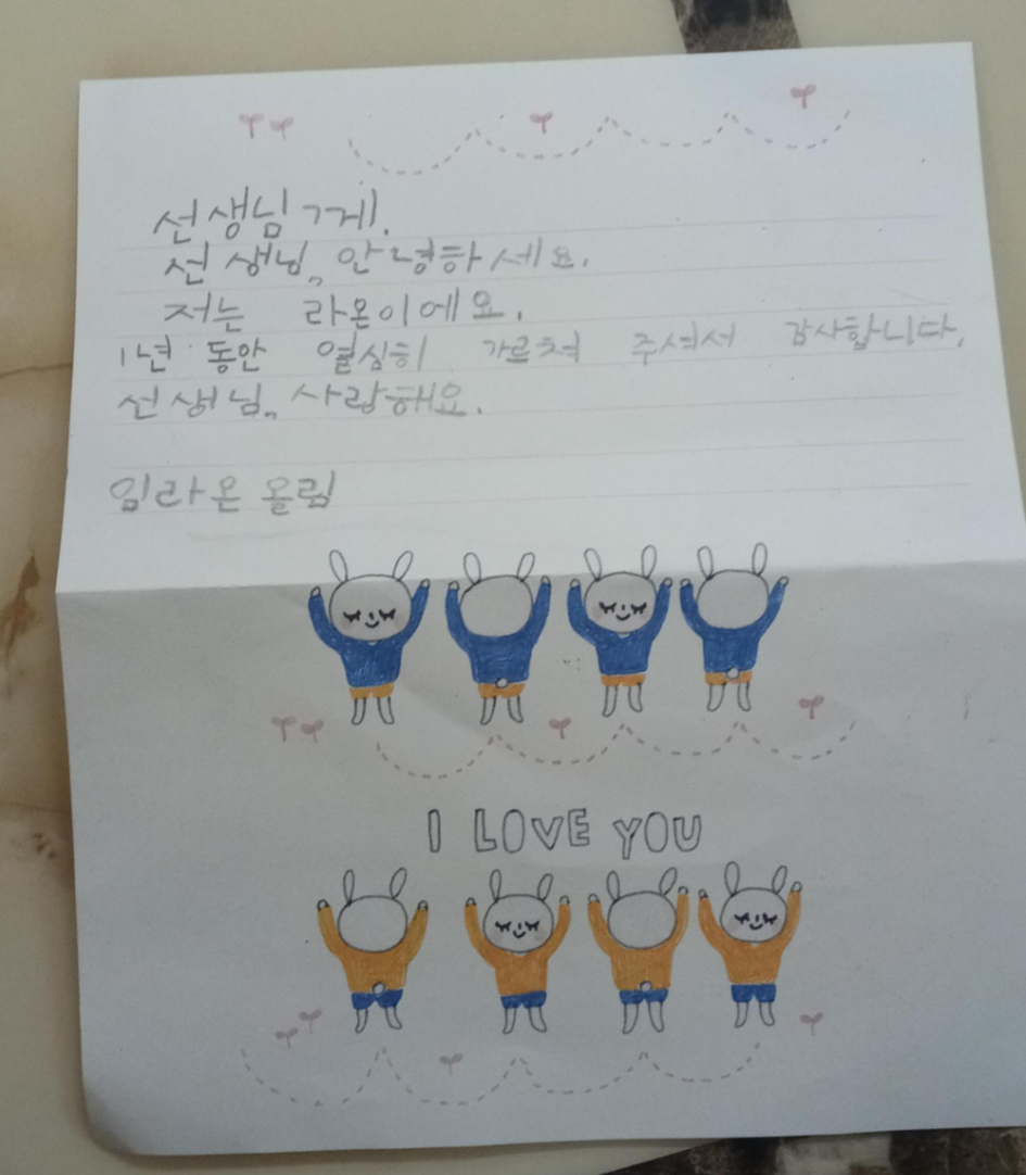 스승의 날도 아닌데 이렇게 감사 편지를 받으니 너무 뿌듯하고 감동적이었어요!
