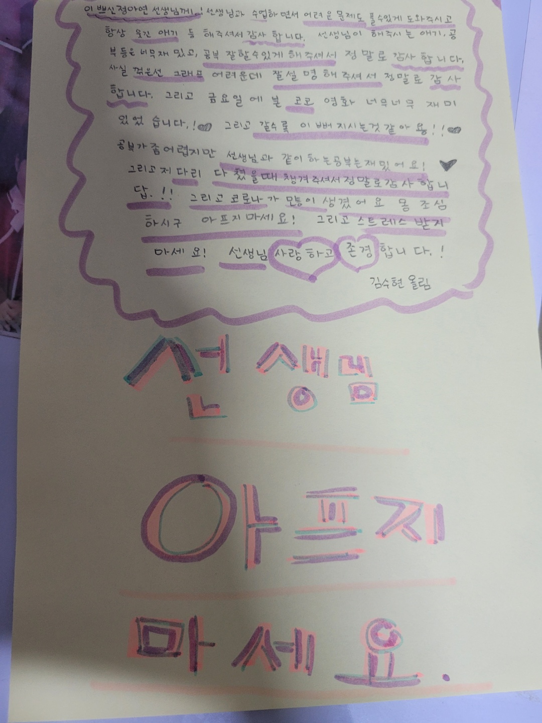 스승의 날도 아닌데 이렇게 감사 편지를 받으니 너무 뿌듯하고 감동적이었어요!