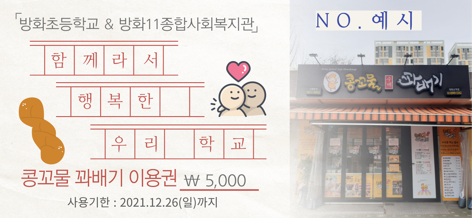 쿠폰을 받아가는 아이들이 모두 콩꼬물 꽈배기에 들러 사장님과 인사하고 선물을 받아갔으면 좋겠습니다.