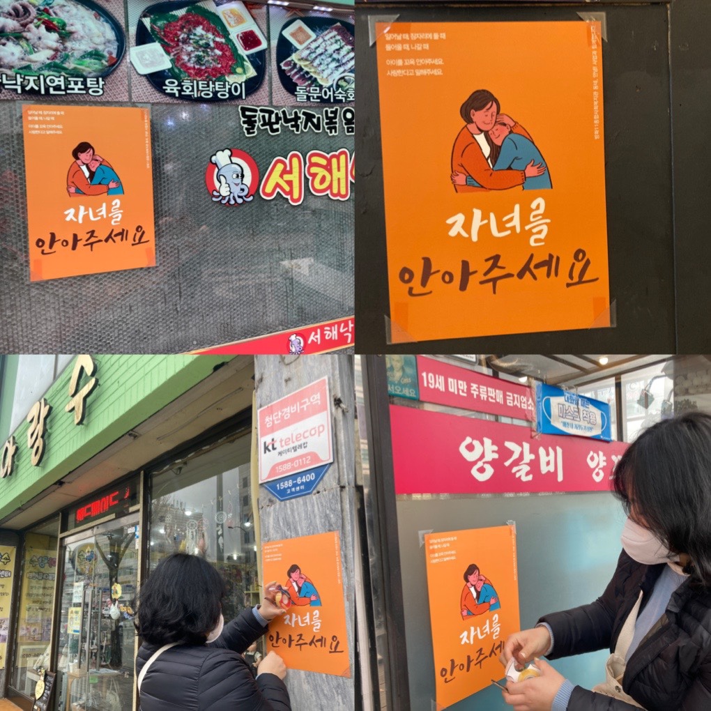 22년 1월 상가인사캠페인 주제는 ‘자녀를 안아주세요’입니다. 21년에도 같은 포스터로 부착했습니다.
