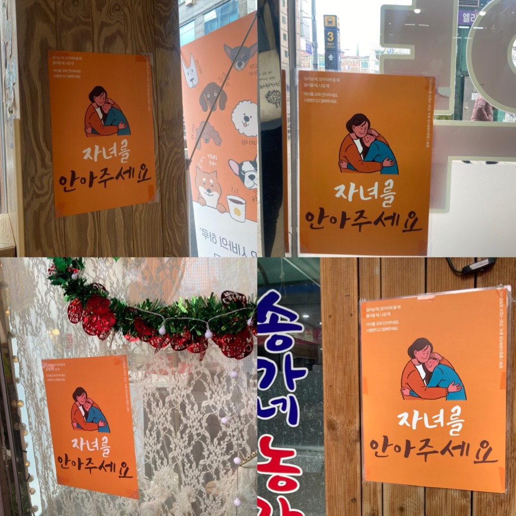 22년 1월 상가인사캠페인 주제는 ‘자녀를 안아주세요’입니다. 21년에도 같은 포스터로 부착했습니다.