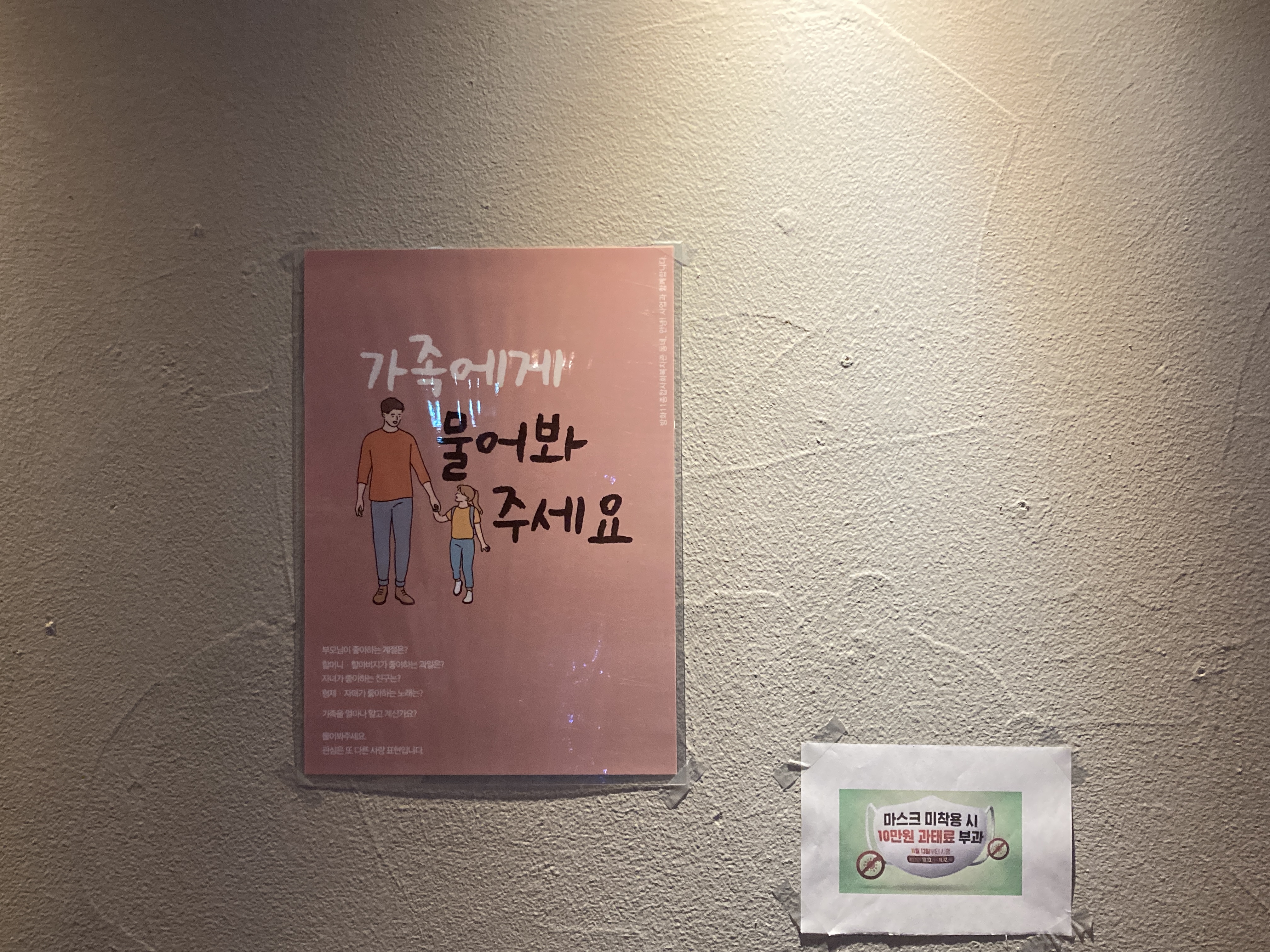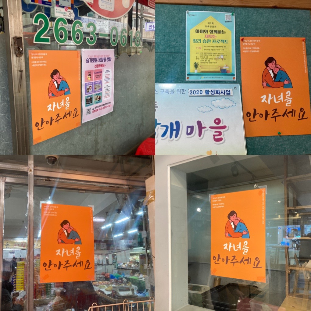총 46곳 상가에 찾아가 인사드리며 가족, 친구, 이웃과 인사하자는 포스터 부착을 제안했습니다.