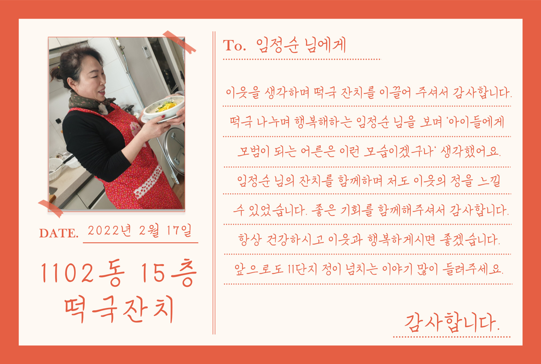 [동네사람들] 1102동 임정순 님 떡국 잔치