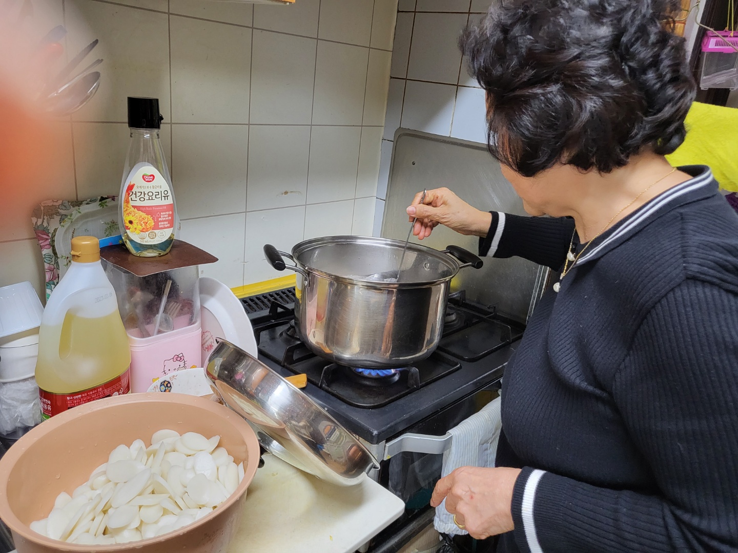 어르신께 이참에 음식 하는 법을 배우고 싶었습니다.