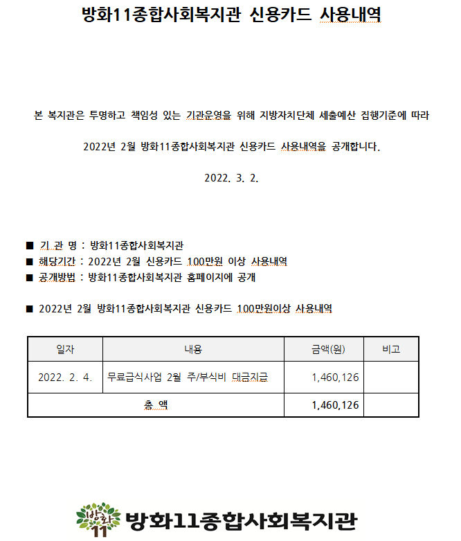 | 2022년 2월 업무추진비 (0) | 2022.03.02 |