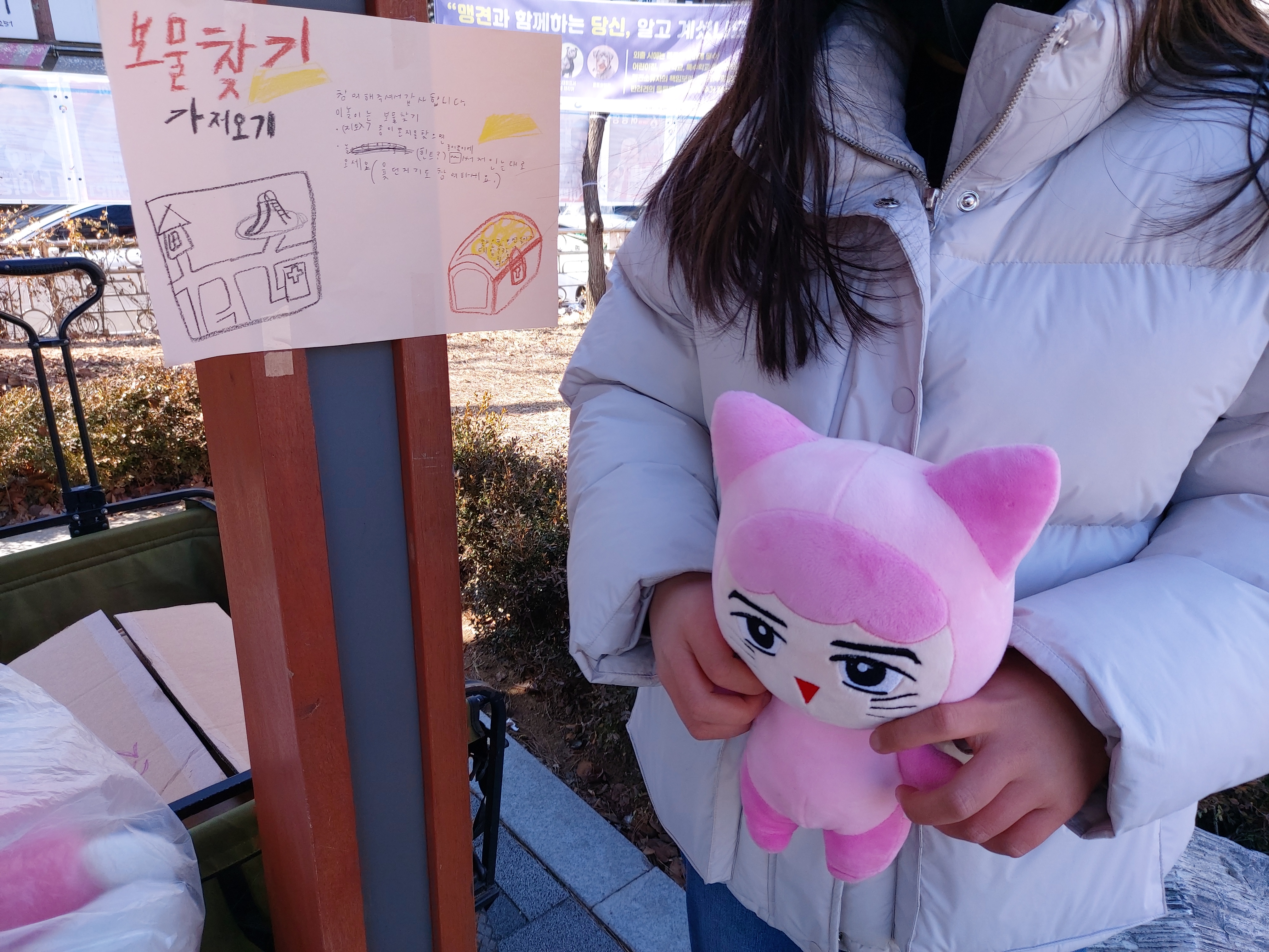 쪽지를 놀이터 곳곳에 숨겨두고 찾아오는 친구들에게 인형을 선물하고 싶다고 했습니다.