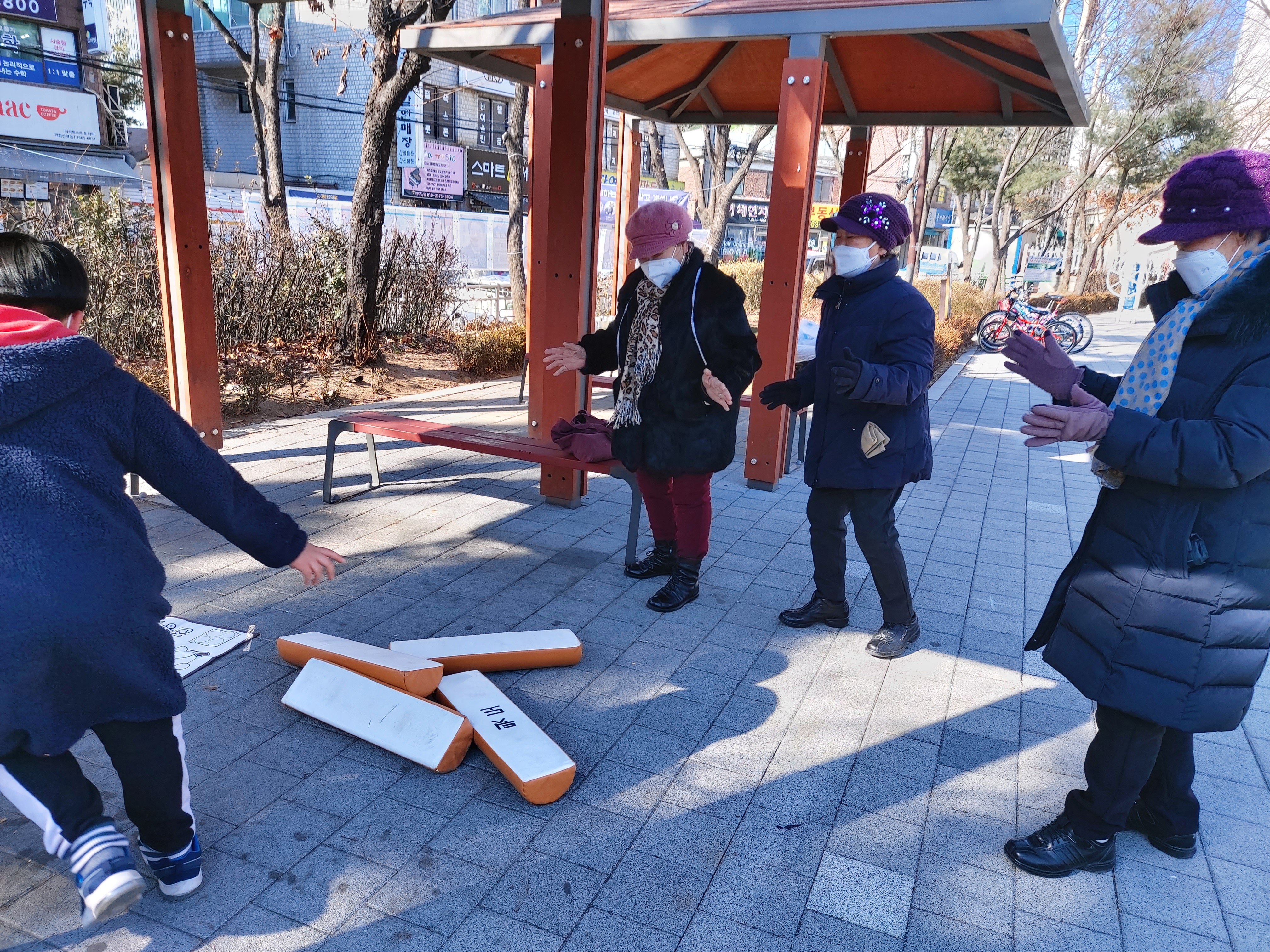 새싹어린이공원에 앉아 담소를 나누고 운동을 하시던 할머니, 할아버지께서도 참여하셨습니다.