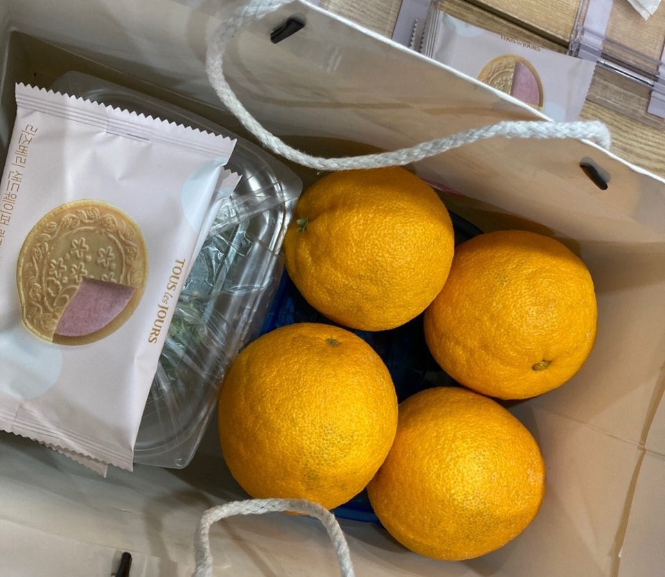 “명절인데, 명절 음식하고 과일 조금 담았어요. 같이 나눠 먹고 싶어 준비했어요.”