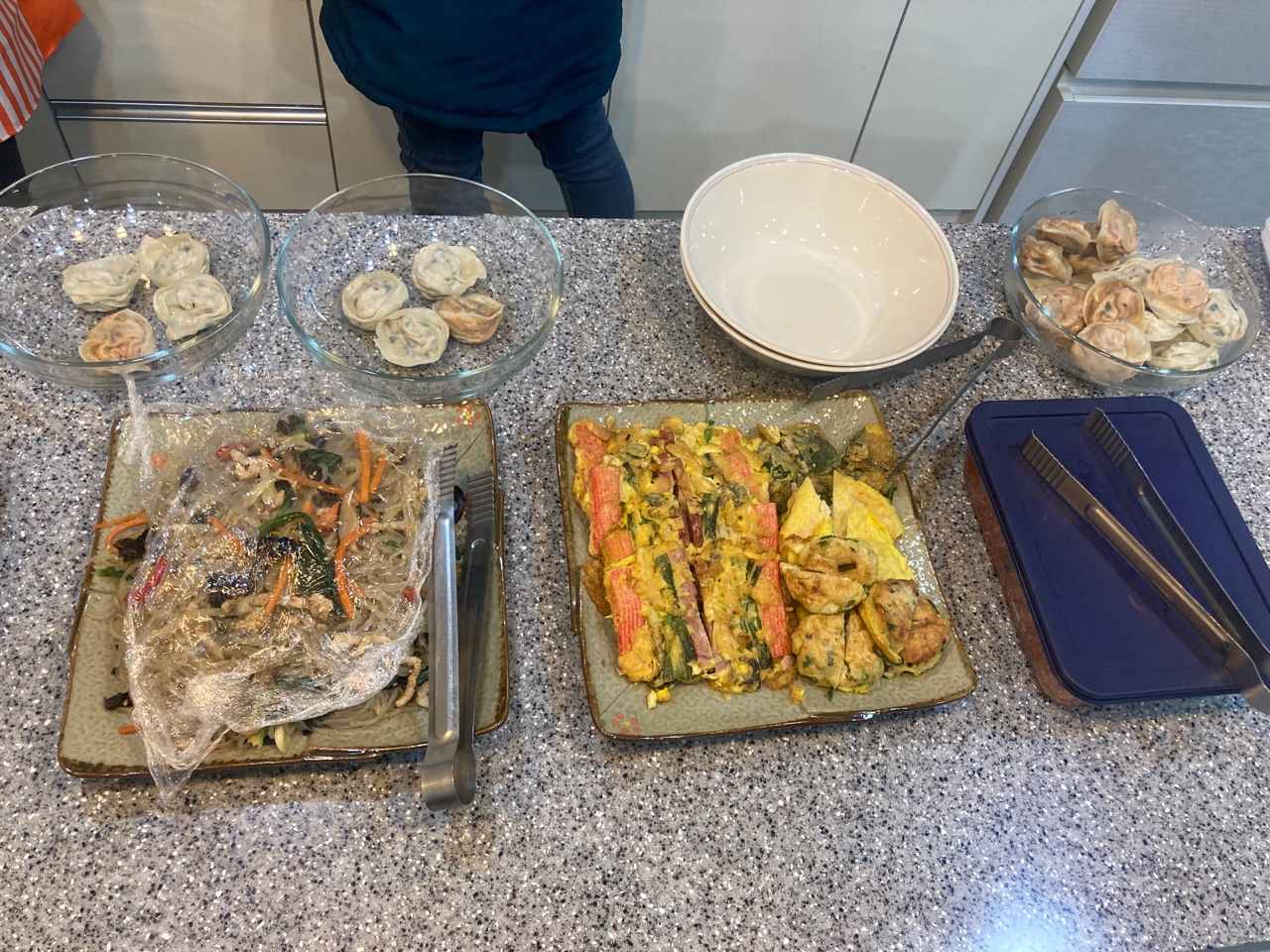 목사님과 사모님은 잡채와 불고기, 전을 떡국과 함께 준비해주셨습니다.