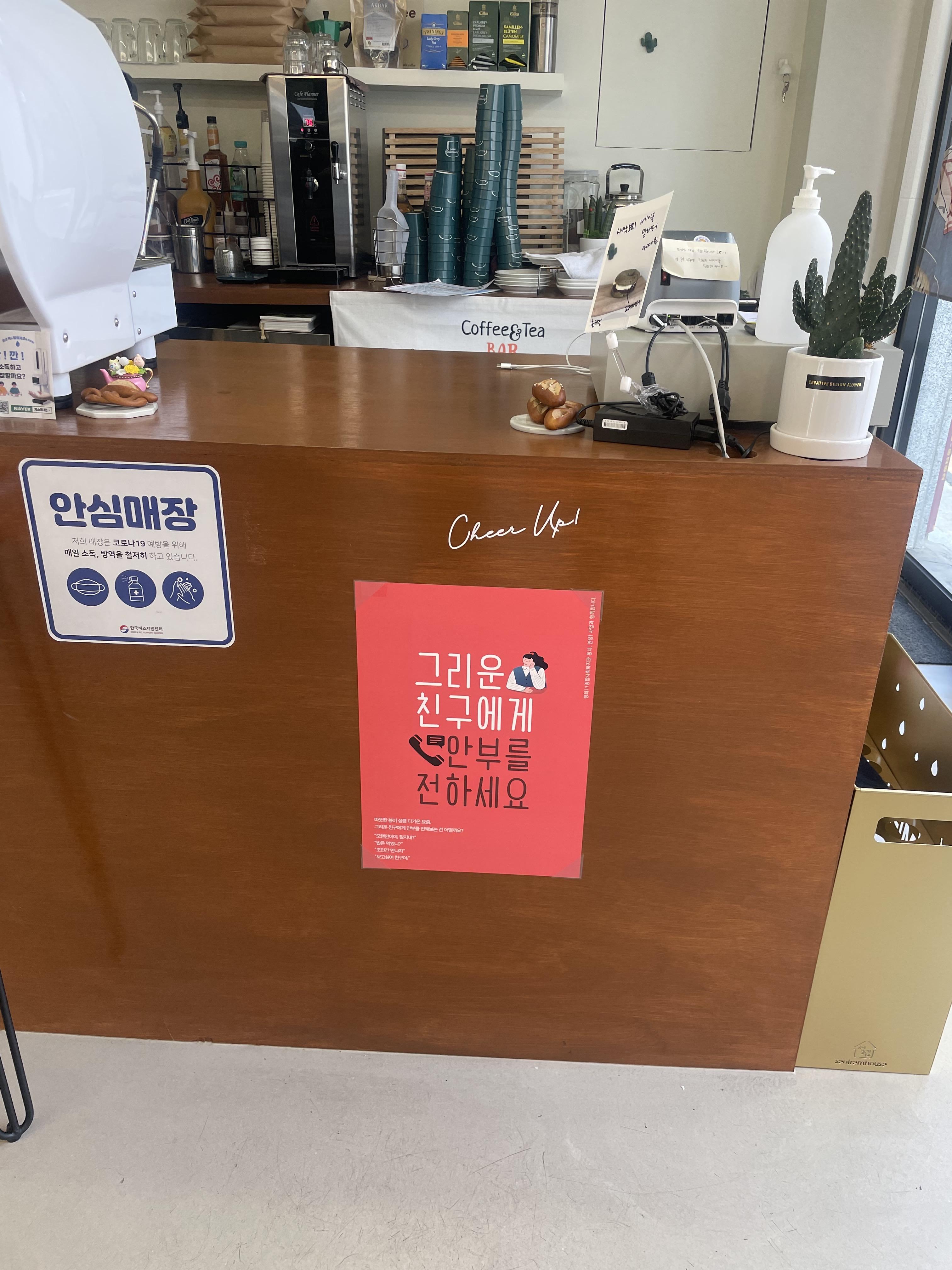 사장님께서 포스터가 가장 잘 보이는 계산대에 붙여주셨습니다.