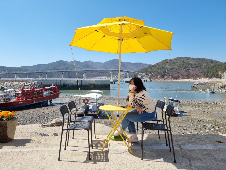 노란색 파라솔이 예뻐요.