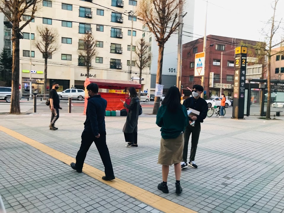 약 2시간동안 개화산 역 앞에서 홍보했습니다.