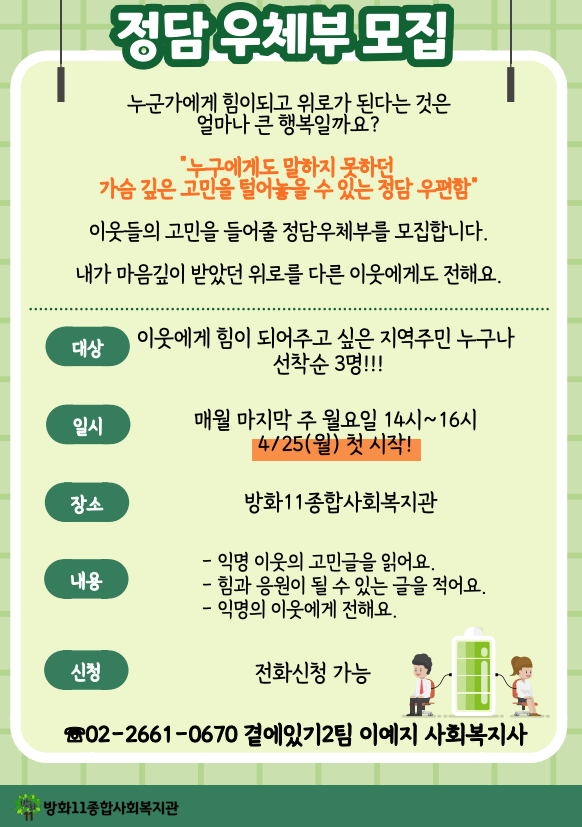 제가 담당하고 있는 청년산책모임, 정담우편함을