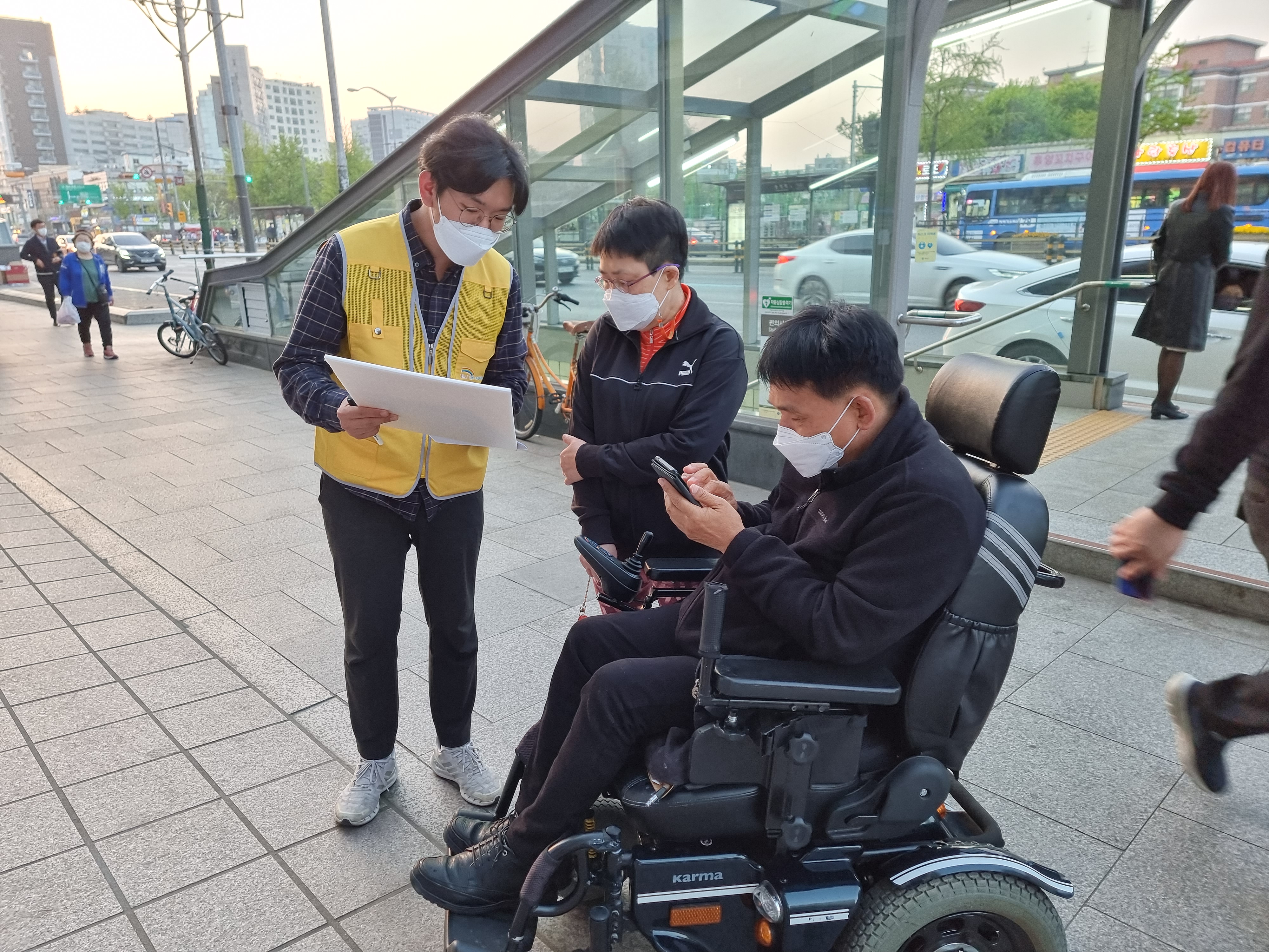 공항동 거리에 나가기 전 권대익 팀장님, 강수민 선생님과