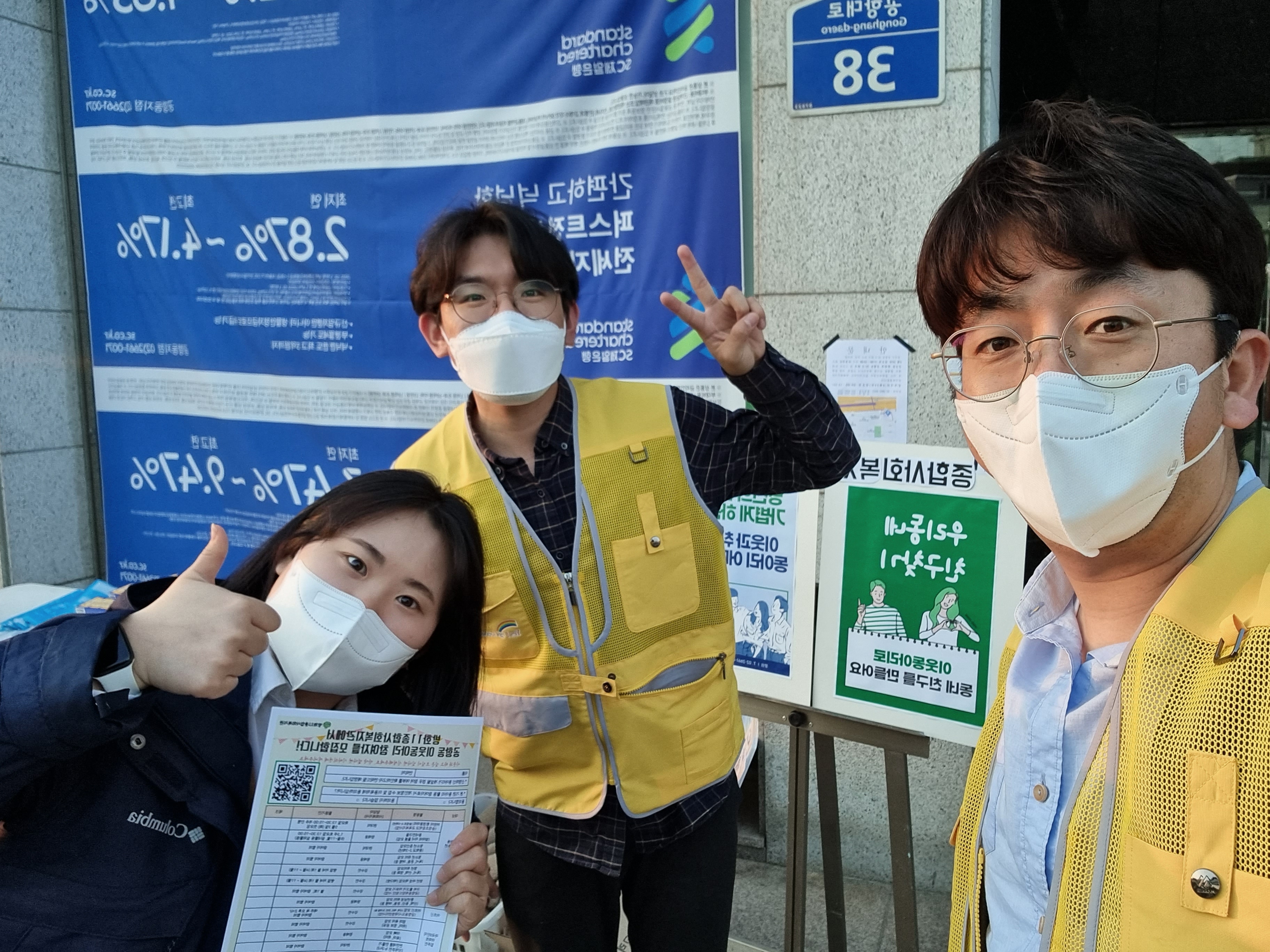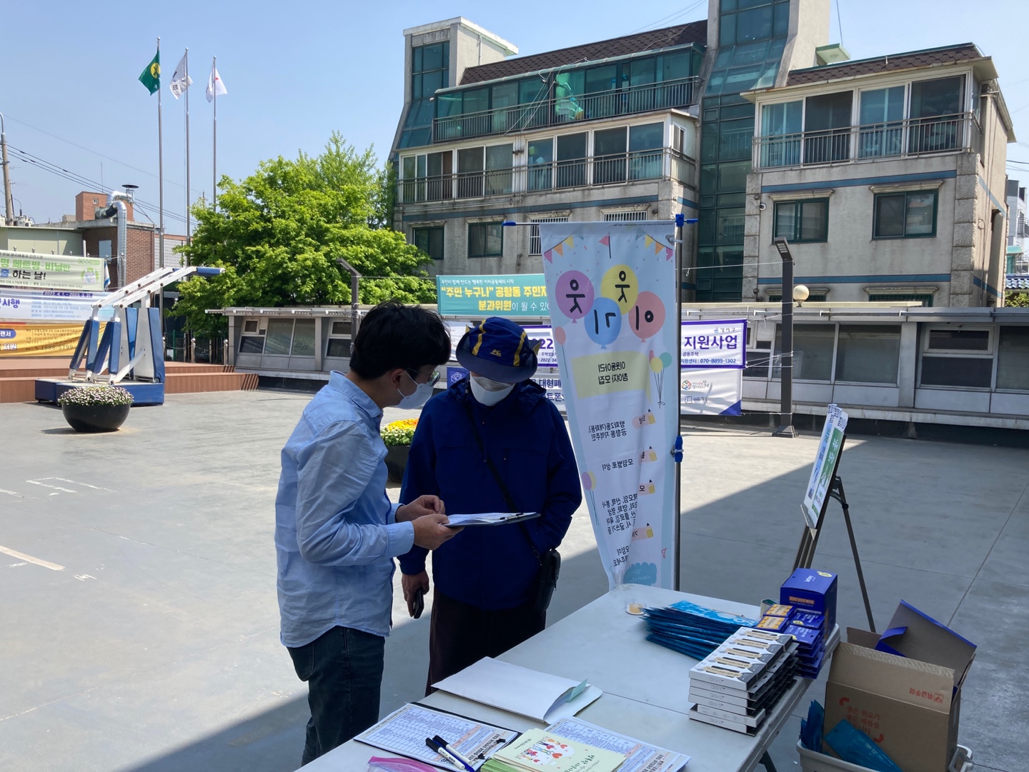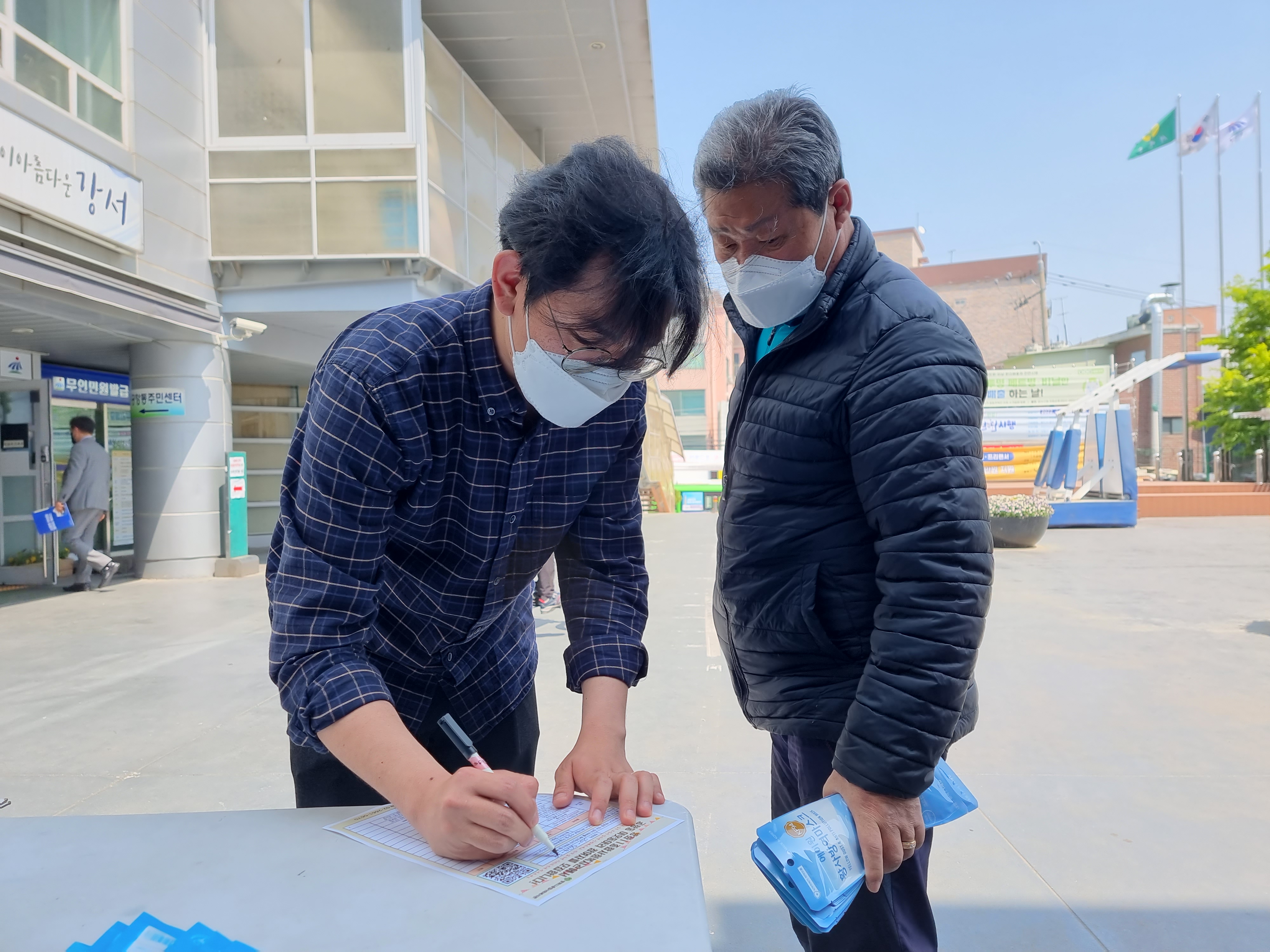 낮에는 유동 인구가 많은 주민센터 앞에서 홍보하기로 했습니다.