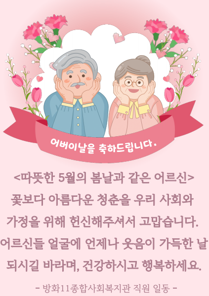1. 바쁜 업무가운데도 오전에 카네이션 포장해주시고 어르신들께 반갑게 인사 건네주신 직원분들 고맙습니다.
