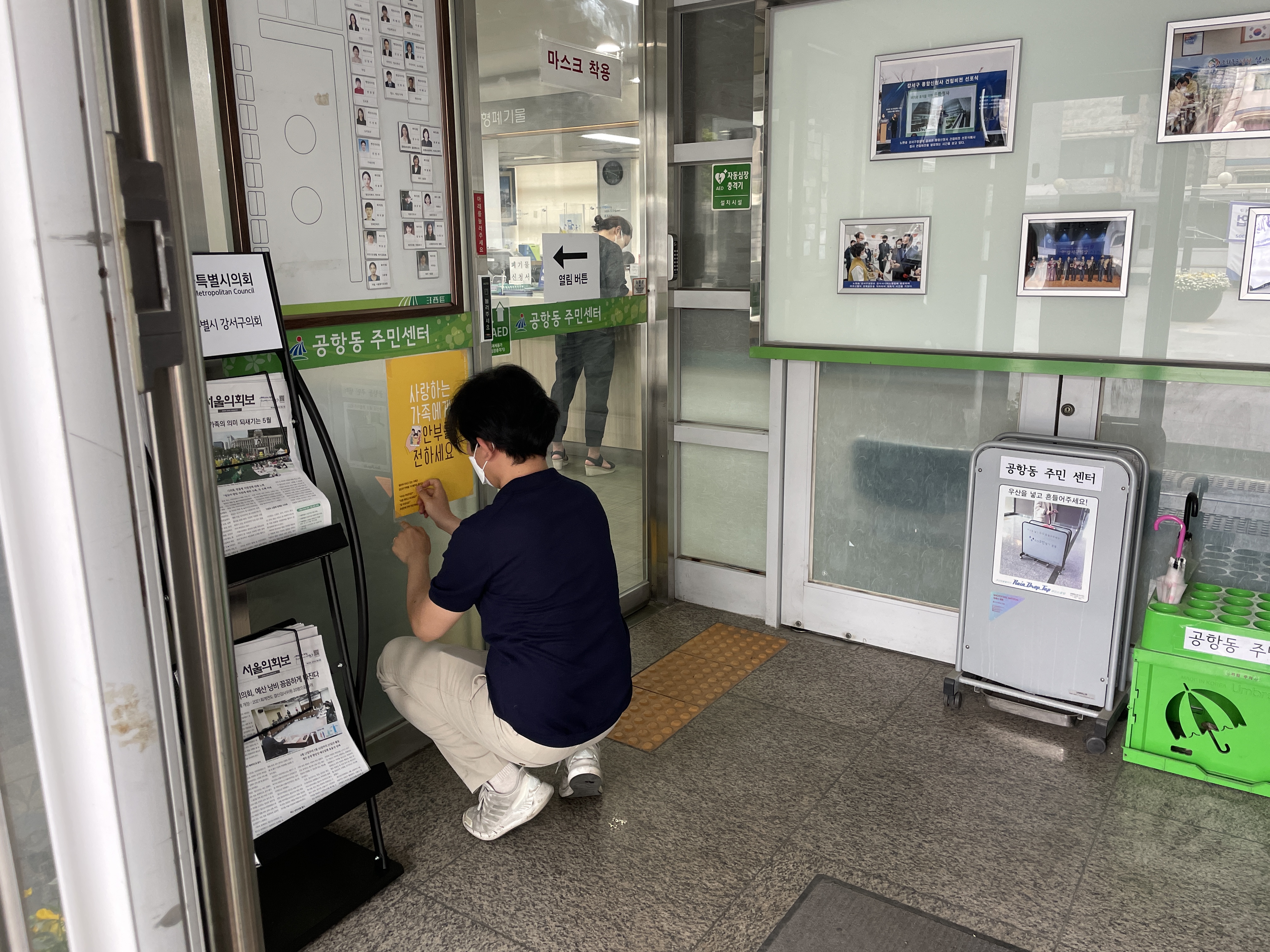 많은 지역주민이 보고 실천하시길 바라는 마음에 공항동 곳곳을 다니는 요구르트 배달차에 부착하면 어떨지 제안했습니다. 환히 웃으시며 너무 좋다고 말씀하셨습니다.