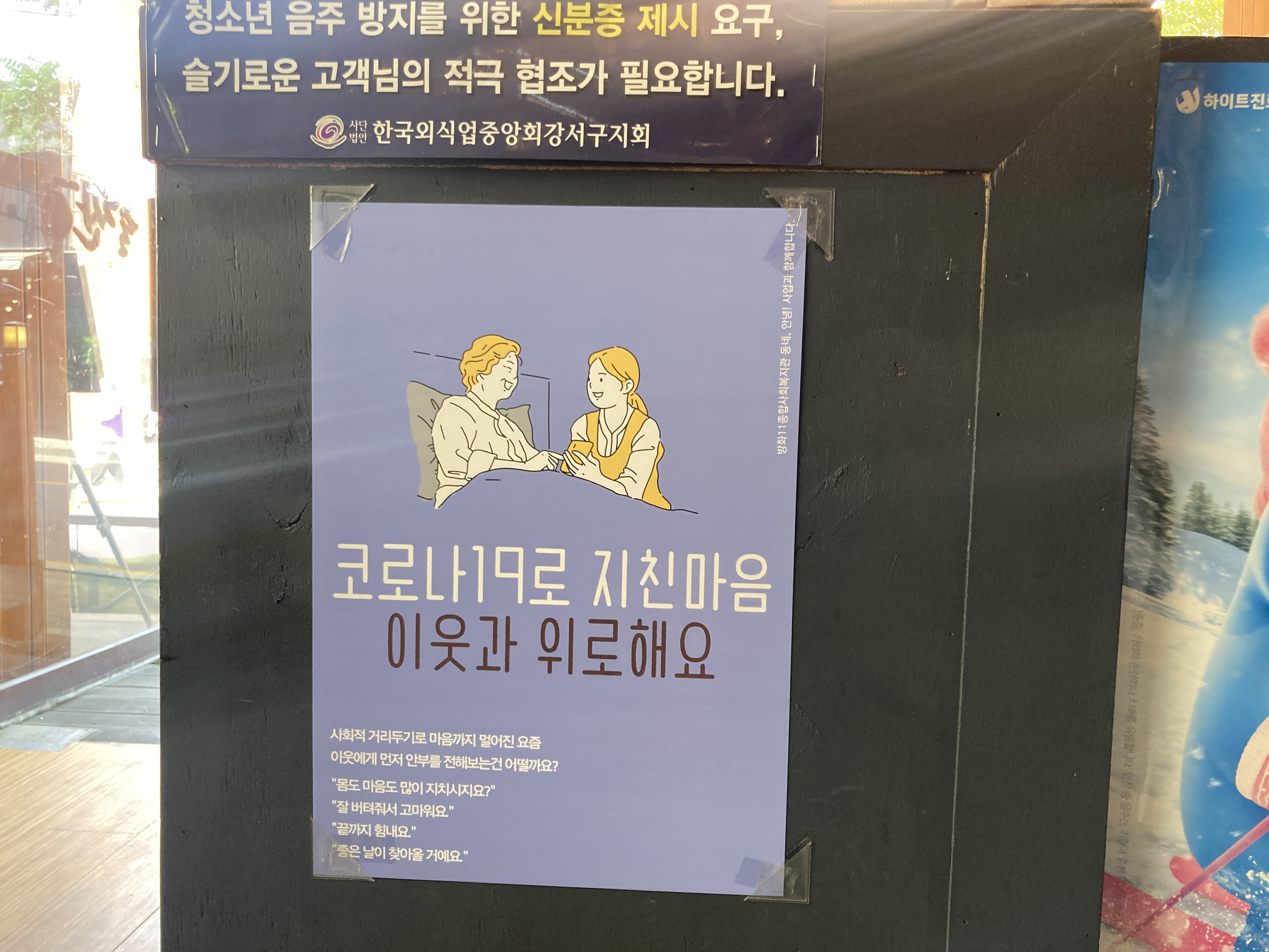 그러니 서로 인사하며 잘 지내자는 의미를 가진 포스터를 마다할 이유가 없다며 붙여달라고 하셨습니다.