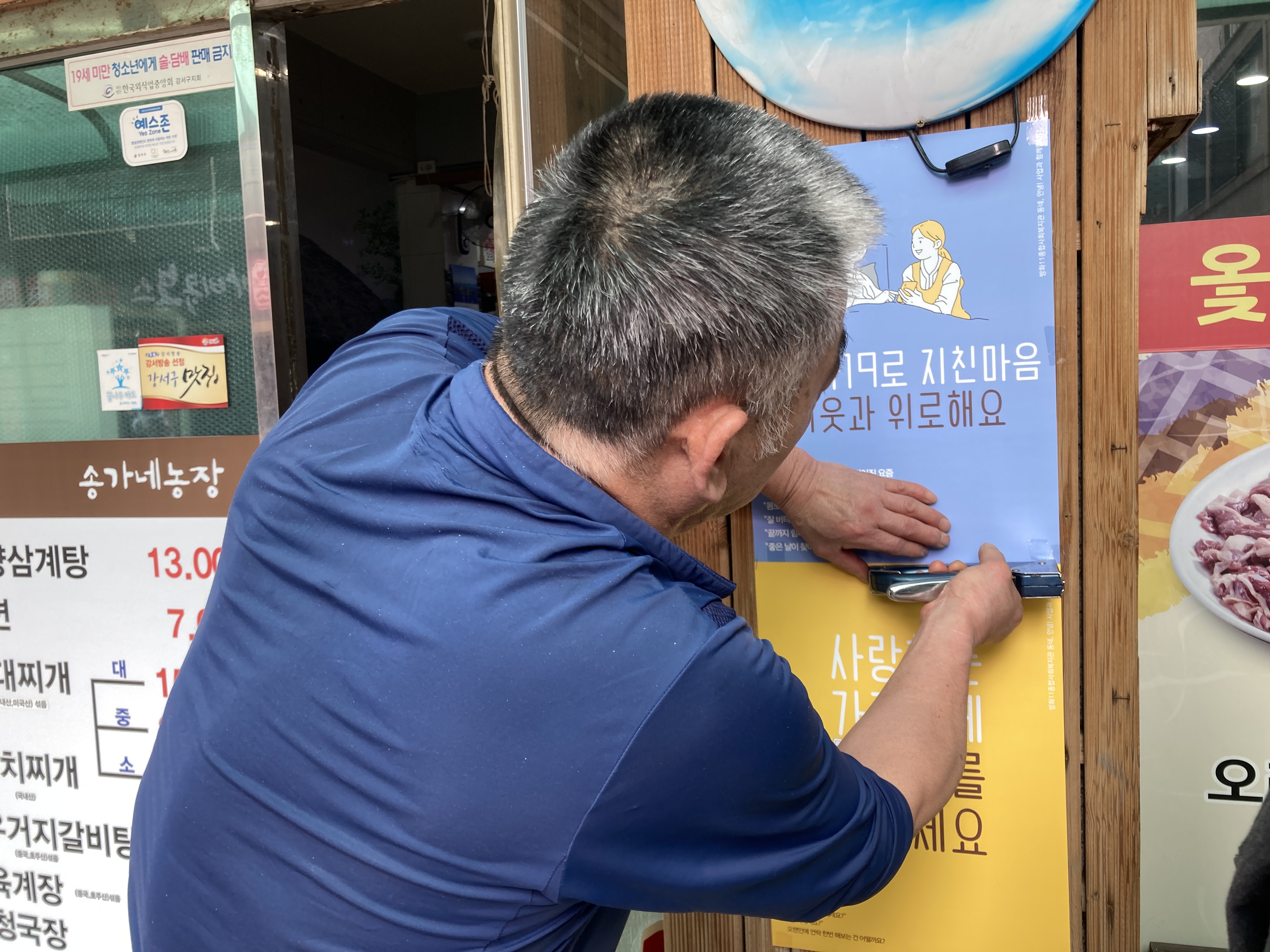 상가사장님이 내 가게에 무엇을 부착할지 직접 선택하셨습니다.