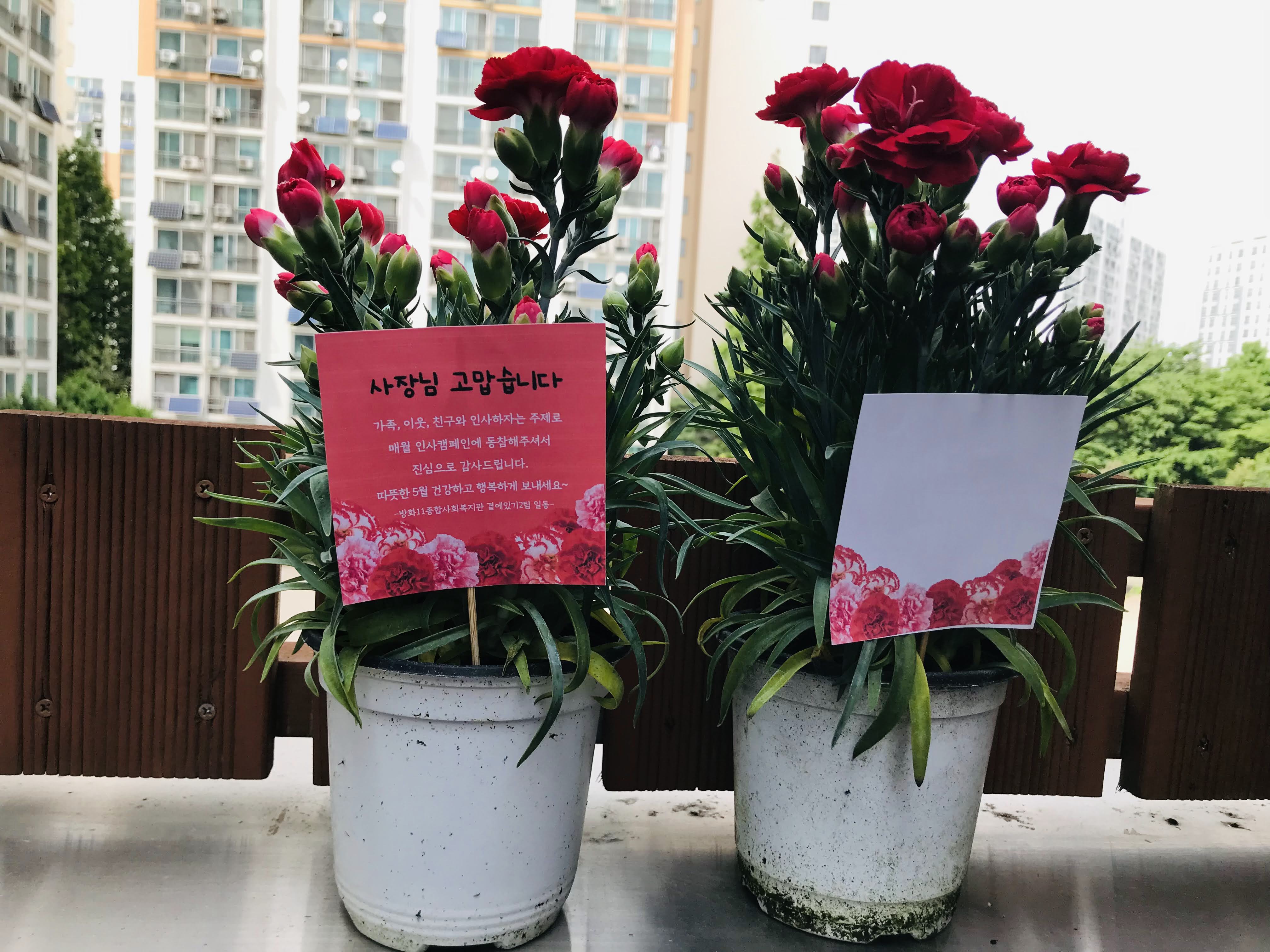 카네이션 화분은 인사캠페인에 동참하고 계시는