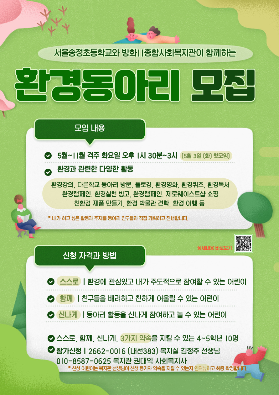 서울송정초등학교 환경동아리 모집 상세 안내, 2022.04.07, 권대익