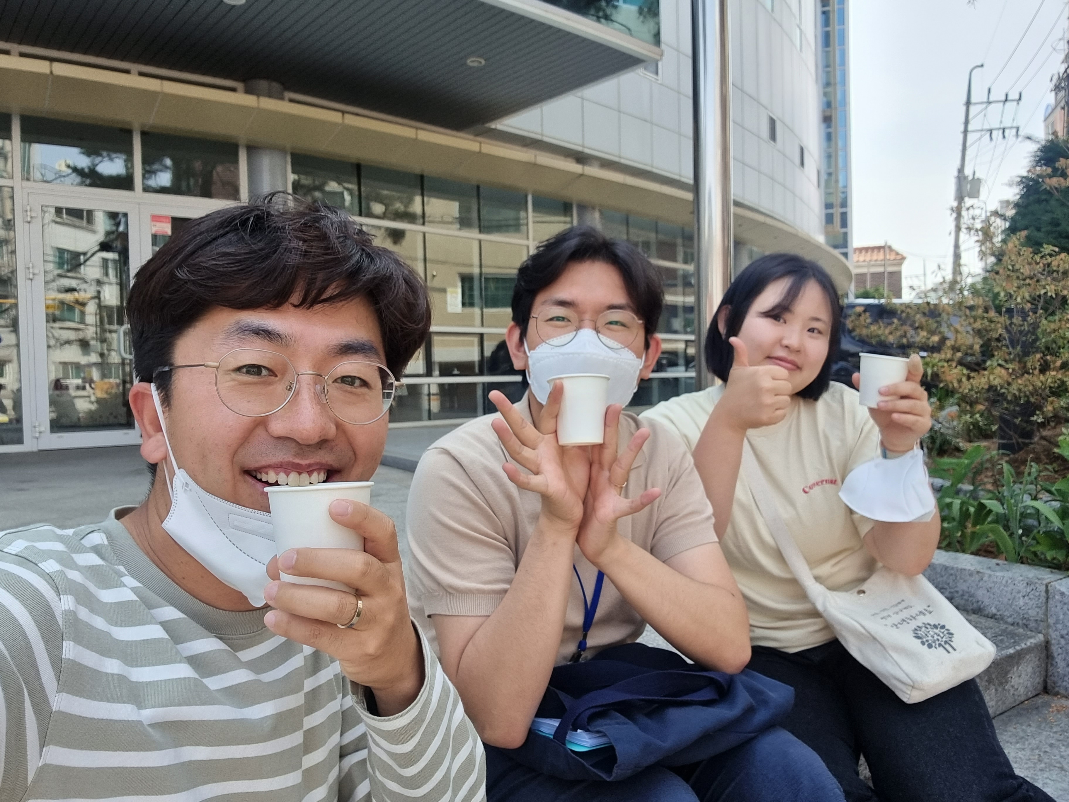 마침 교회 간사님께서 커피를 내어주셨습니다.