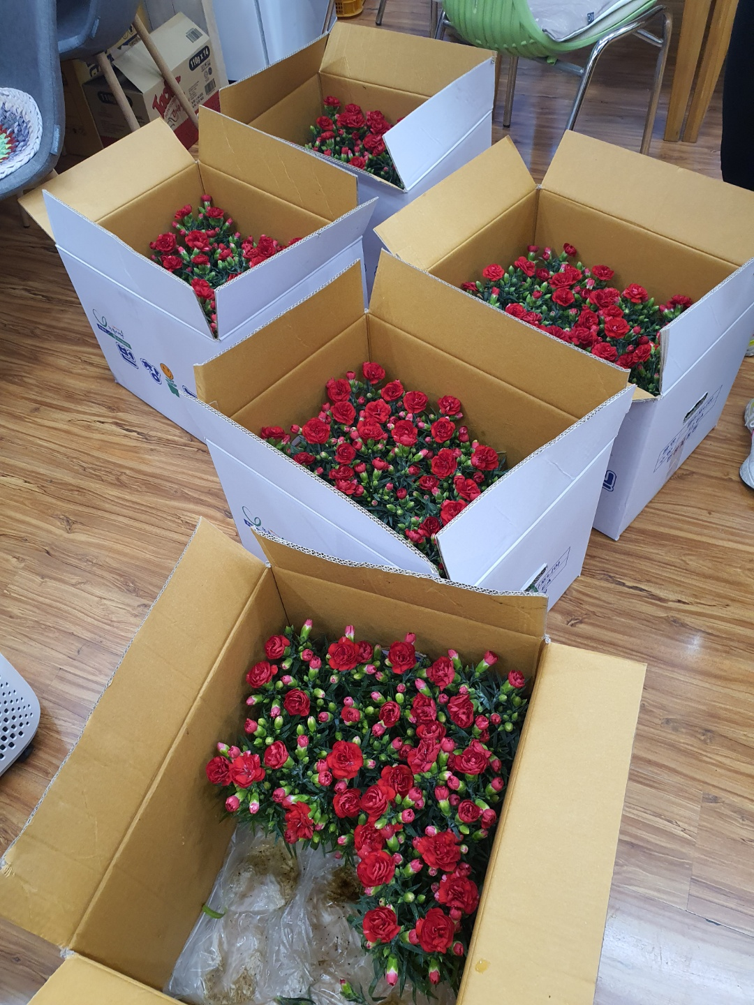 복지관에 카네이션 화분 후원이 들어왔습니다.