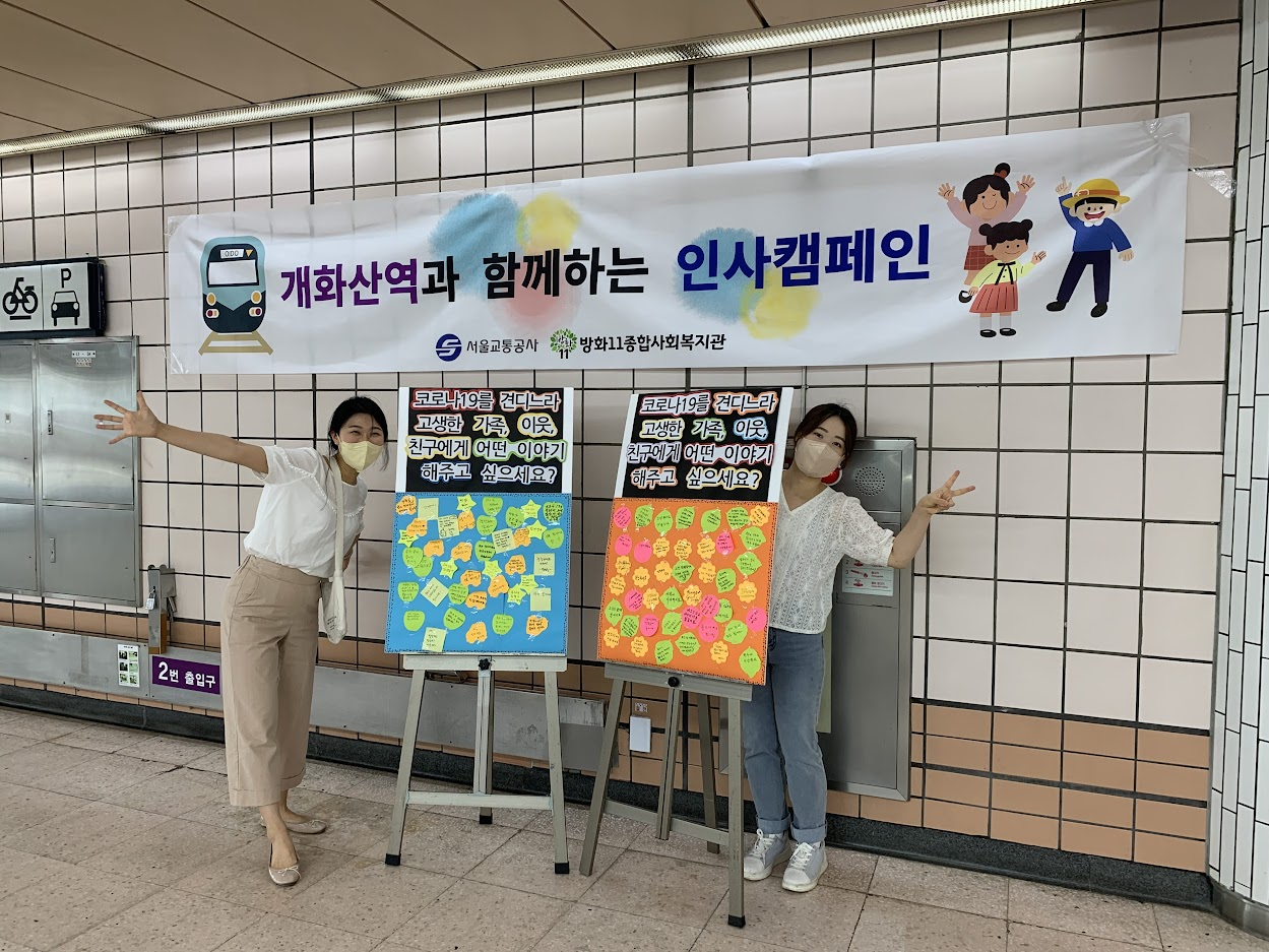 이번 캠페인을 계기로 복지관은 개화산역이라는 중요한 자원을 알게 되었고, 관계를 맺게 되었습니다. 이번에 쌓은 관계를 바탕으로 앞으로도 다양한 인사캠페인과 가족, 이웃, 친구 사이를 좋게 하는 여러 일들을 해보길 소망합니다.