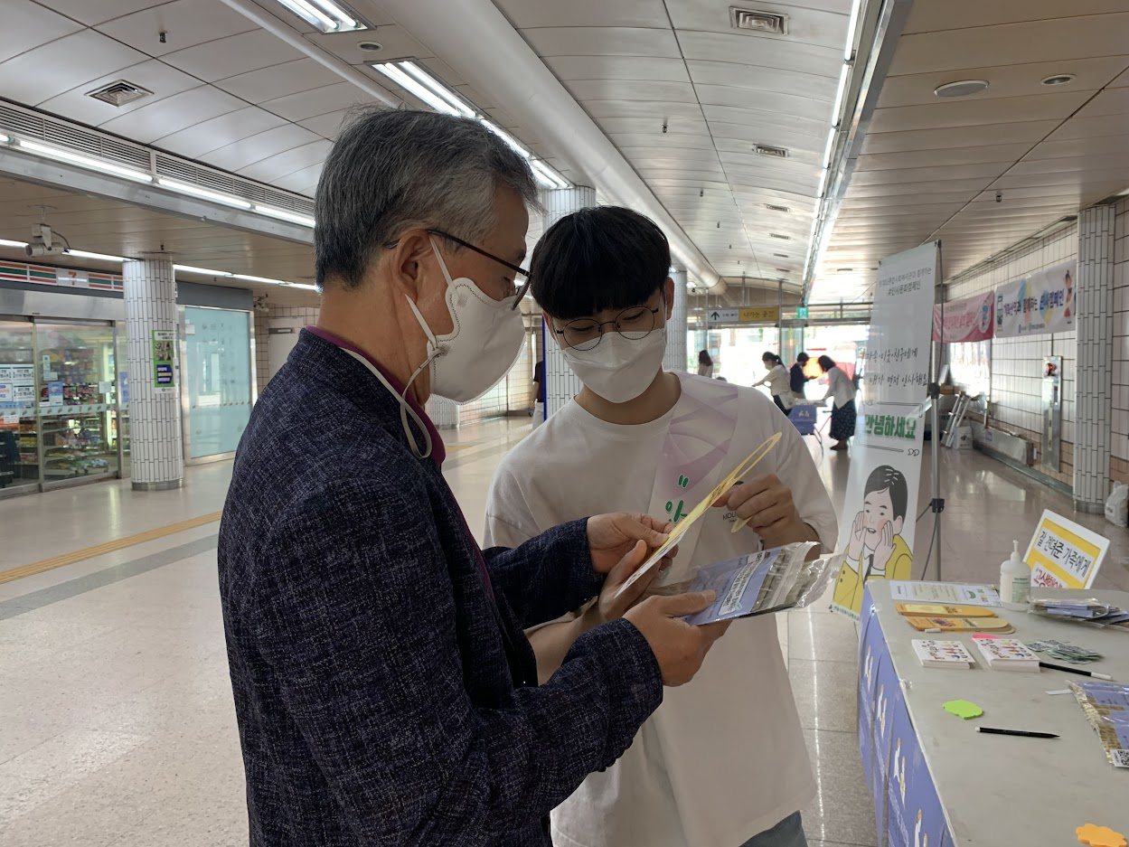 인사캠페인을 진행하는데 있어서 지지해주고 참여해주신 역장님께 고맙습니다. 덕분에 많은 주민들이 오가는 곳에서 캠페인 하면서 평소에 만나기 어려웠던 분들에게도 가족, 이웃, 친구와 인사하자는 캠페인을 알릴 수 있었습니다.