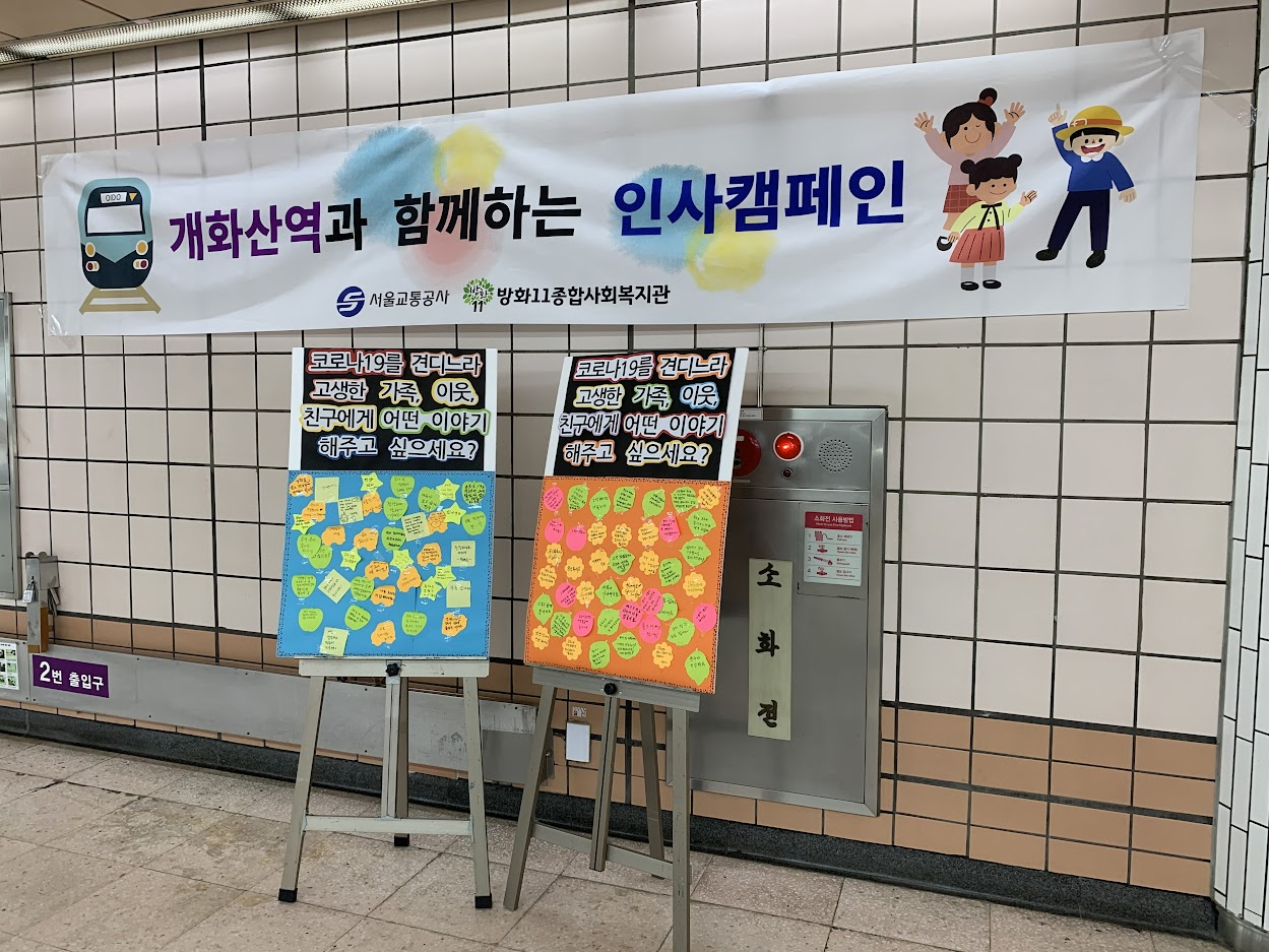이번 캠페인을 계기로 복지관은 개화산역이라는 중요한 자원을 알게 되었고, 관계를 맺게 되었습니다. 이번에 쌓은 관계를 바탕으로 앞으로도 다양한 인사캠페인과 가족, 이웃, 친구 사이를 좋게 하는 여러 일들을 해보길 소망합니다.