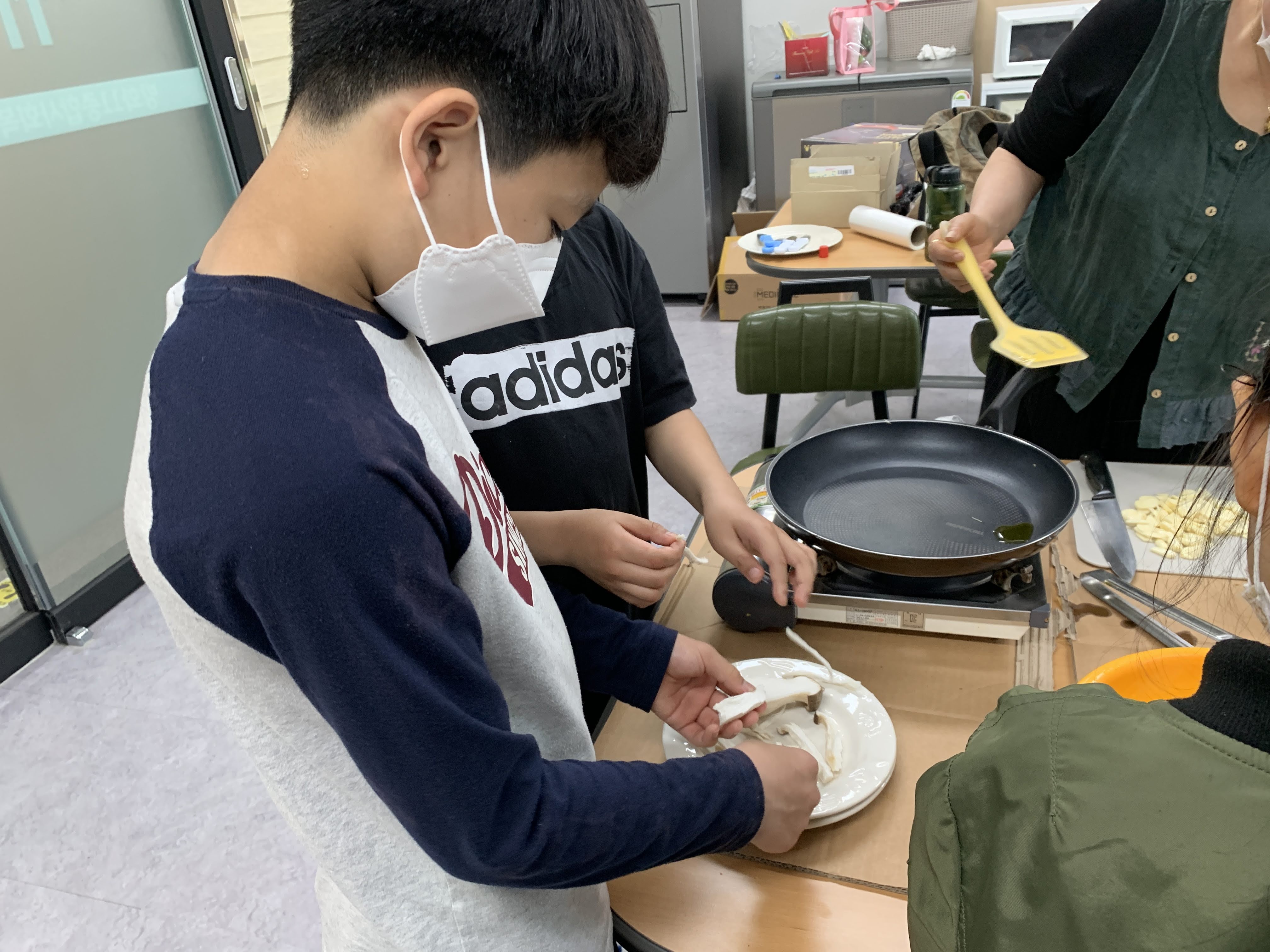 맛있는 냄새를 맡으며 직접 조리하니 아이들도 더 적극적입니다.