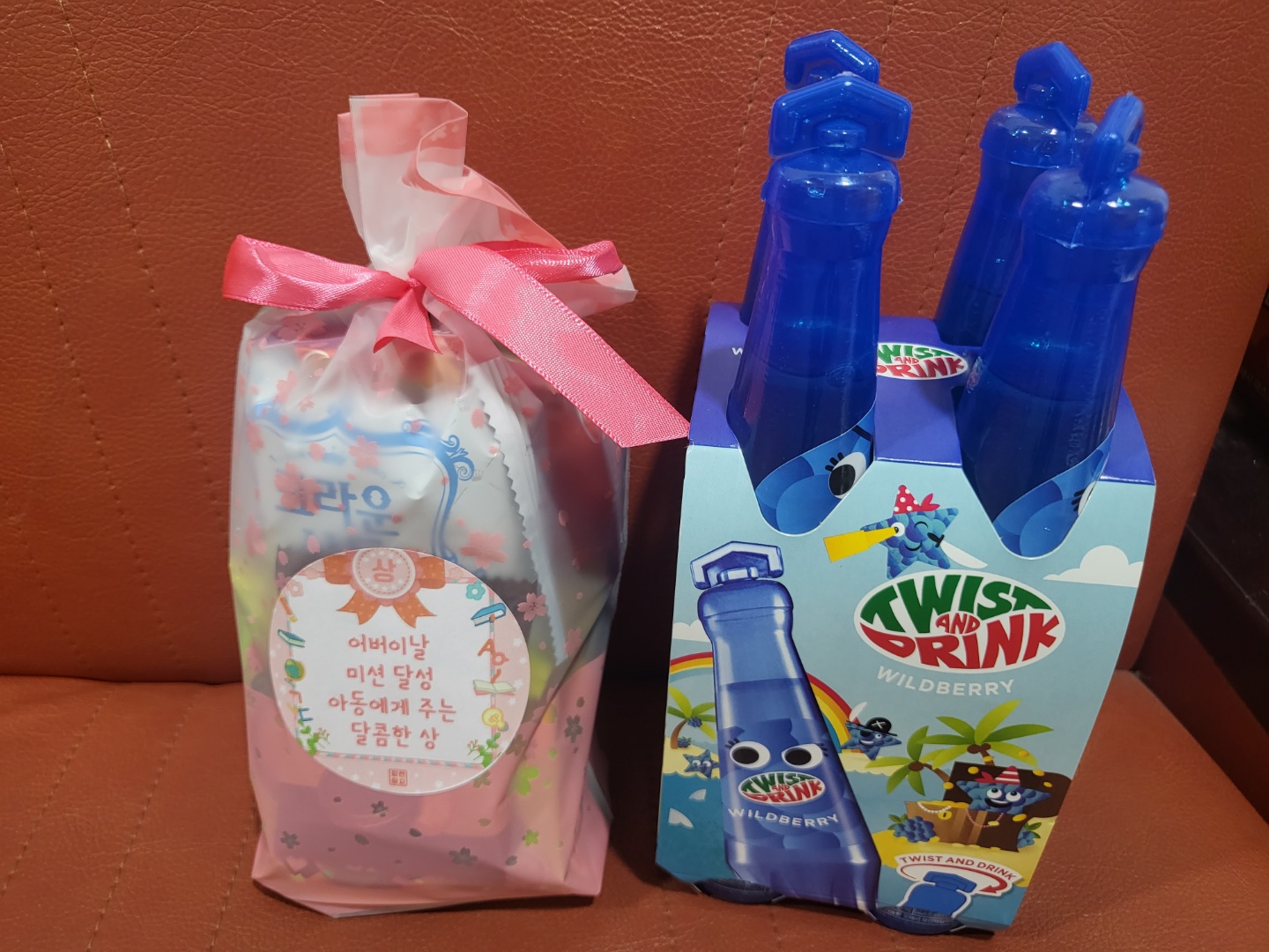 과자 꾸러미에는 '어버이날 미션 달성 아동에게 주는 달콤한 상'이라는 문구를 넣었습니다.