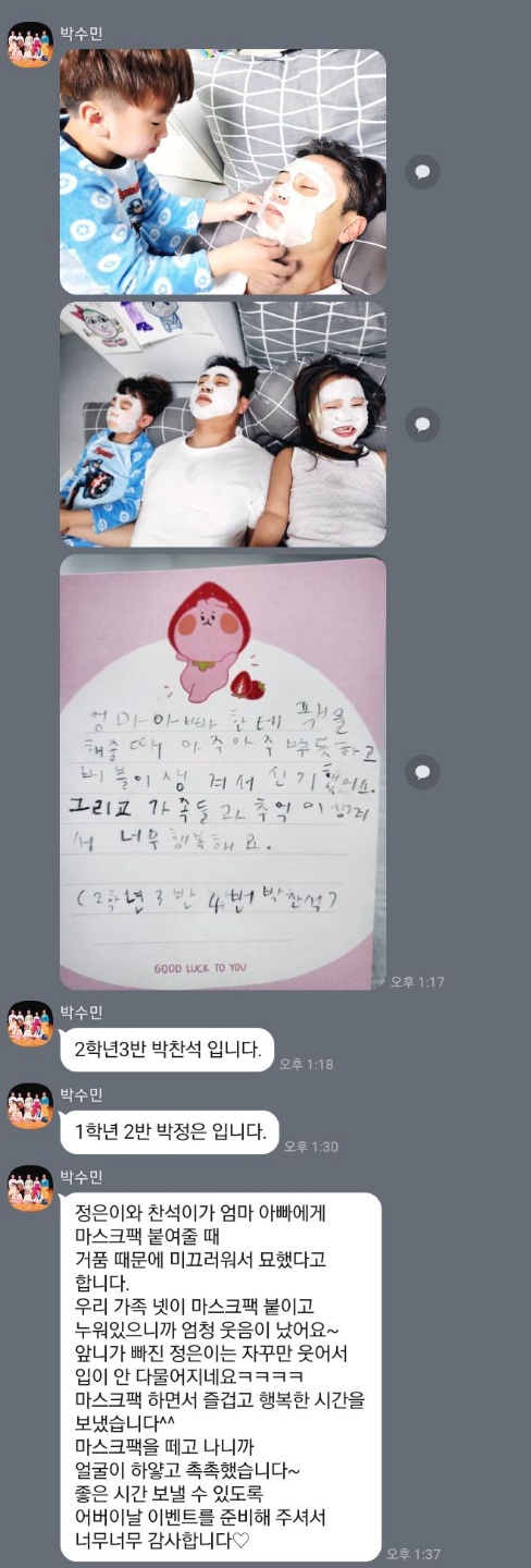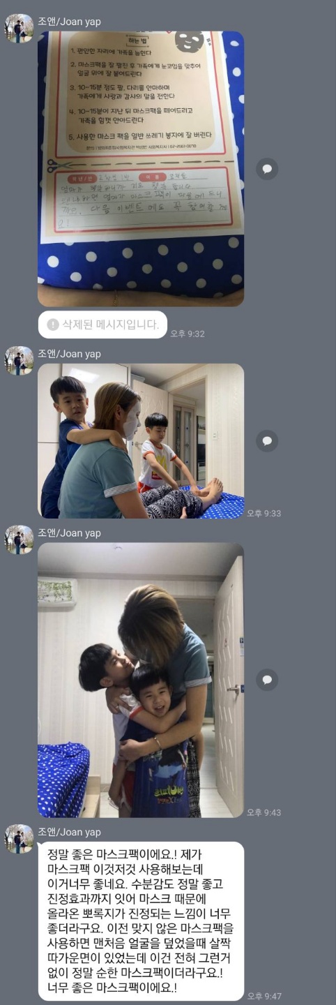 가정의달~ 준비해주신 이벤트로 가족들과 함께 팩하고 즐거웠던 시간이였습니다. 감사합니다♡