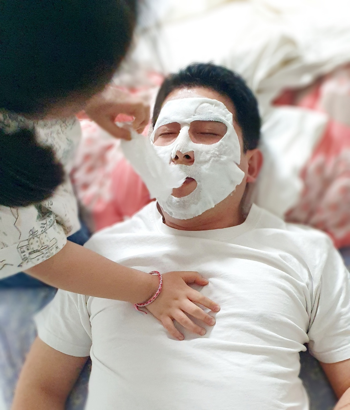 퇴근 후 지친 아빠 얼굴에 마스크 팩 붙여주면서 마스팩이 미끌거린다며 온가족이 까르르르 웃으면서 행복한 시간을 보낼 수 있어서 좋았습니다. 이런 이벤트가 없었다면 아빠 얼굴을 저렇게 어루만질 일이 없었을 텐데,, 좋은 행사라고 생각해요~~~
