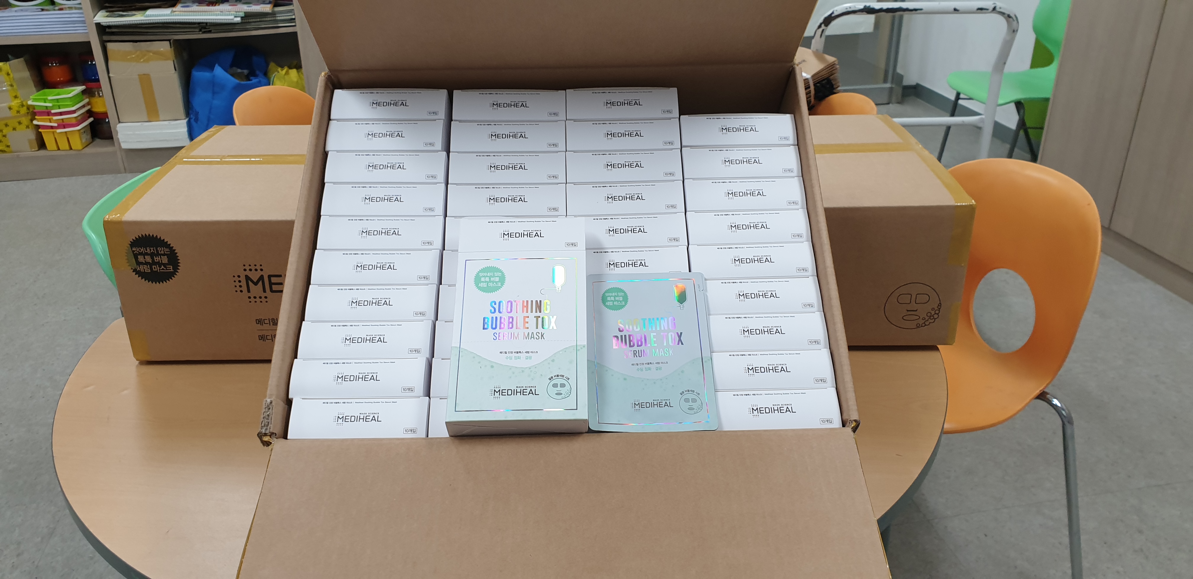 지속적인 연락 끝에 감사하게도 마스크팩 1,200매를 후원받아 활동에 사용할 수 있었습니다.