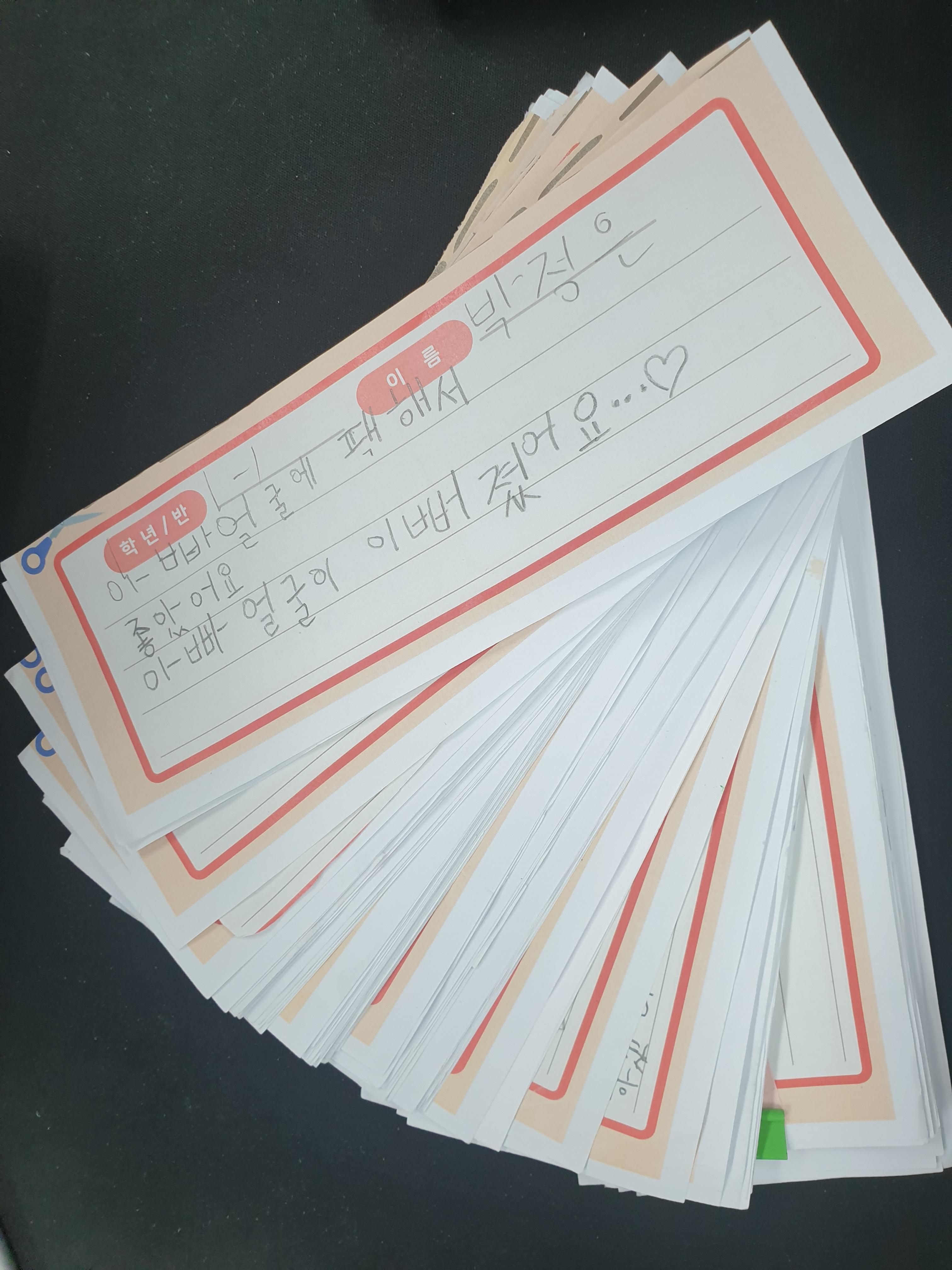학생들은 오프라인 홍보지를 잘라서 박미경 선생님 반 문 앞에 있는 후기함에 넣고,