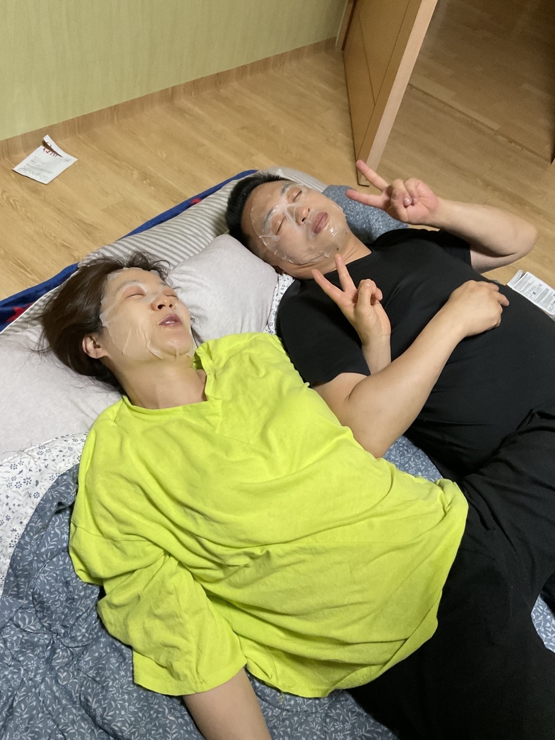 민망하지만 ㅋ 마시크팩 2개 들어 있어서 신랑이랑 저랑 나란히 팩 했어요^^ 이런 이벤트 해주셔서 감사합니다. 이날 하루 행복했습니다~~