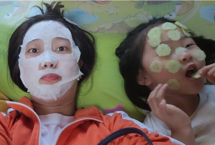 바쁜 일상, 딸의 이끎에 얼굴을 씻은 후 소파에 누웠다. 냉장고 넣어둬서 차가워진 마스크팩. 마스크팩이 미지근해질 때까지 토닥토닥 안마를 해주는 아린이. 천국이 따로 없다. 준비한 예쁜 마음까지 꼬옥 안아주었다. 존재만으로도 고맙고 예쁜 딸 오늘도 고마워♡