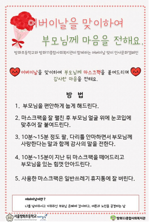 | [동네,안녕!] 개화초등학교 어버이날 마스크팩 인사캠페인 (3) | 2022.06.09 |