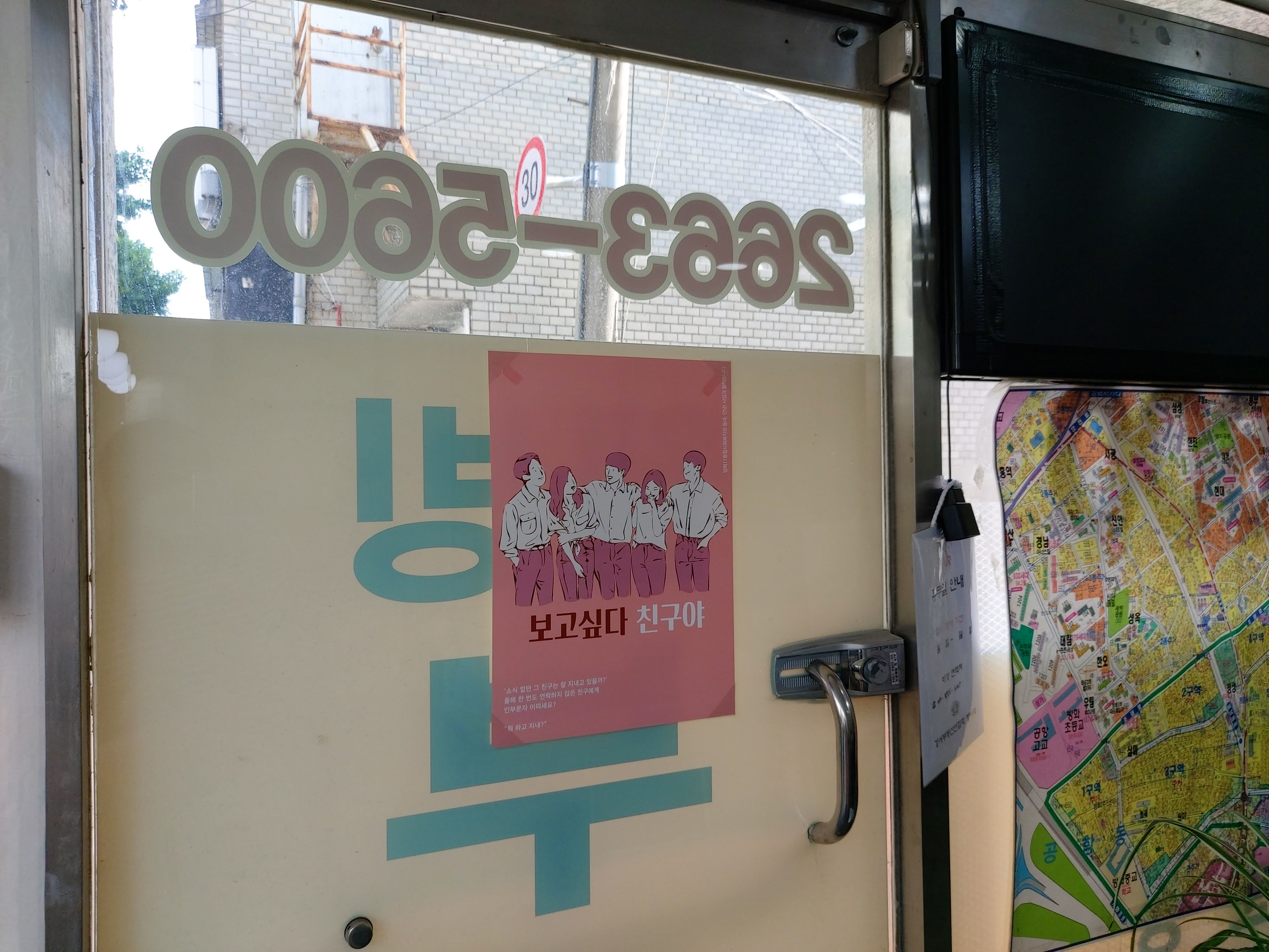확인차 찾아가 보니 문 앞 잘 보이는 공간에 지난달부터 붙여주고 계셨습니다.