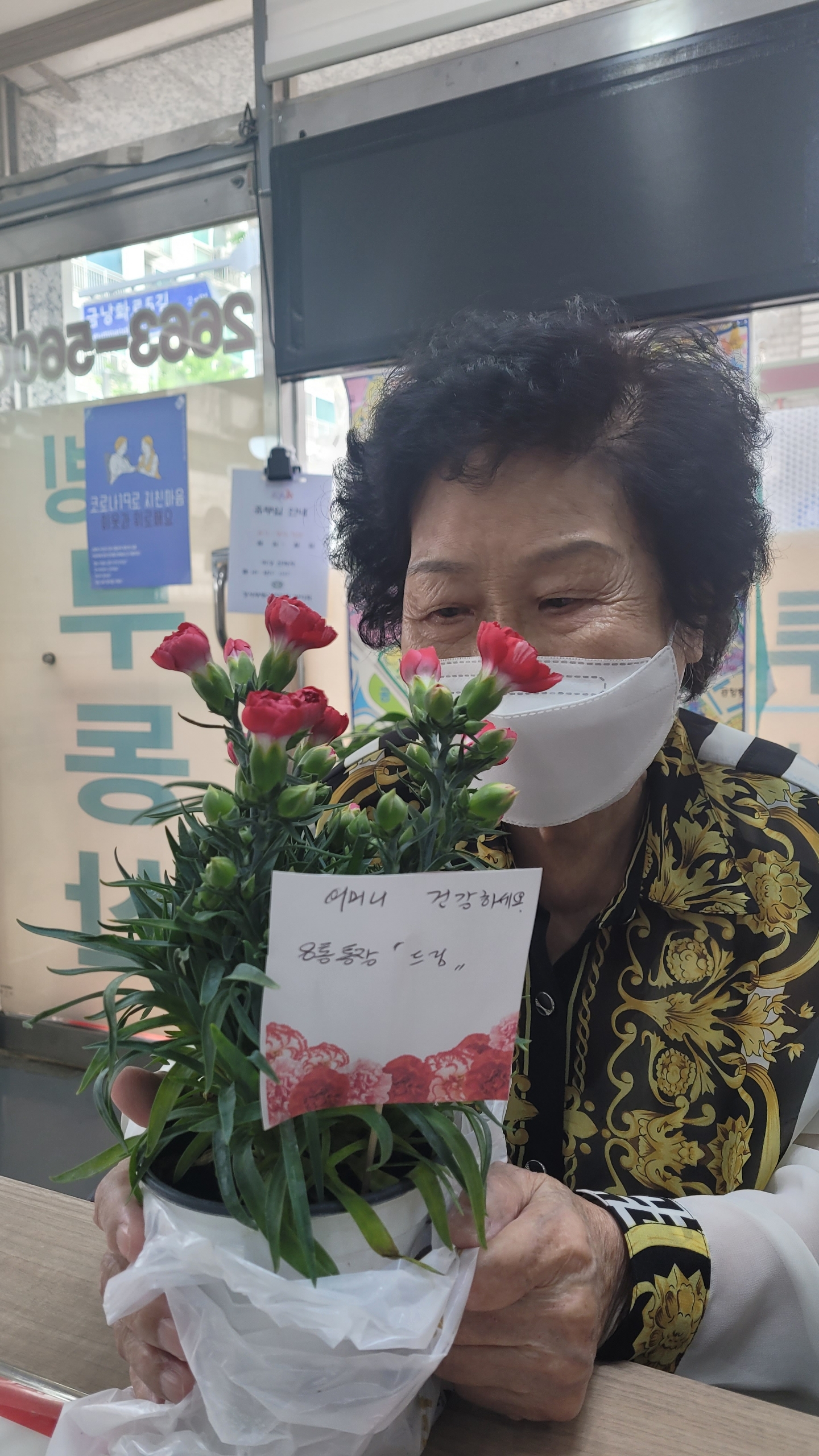 “동네에 가깝게 지내는 나이 많으신 어르신께 카네이션과 쪽지 나누었습니다.
