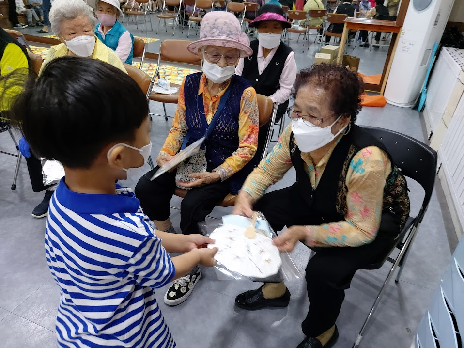 아이들에게 부채를 받으신 박 씨 어르신께서,