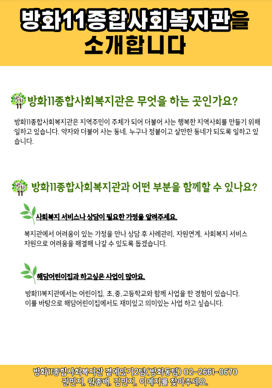 “방화11종합사회복지관과 지역사회 연계 활동 함께하고 싶어요.”