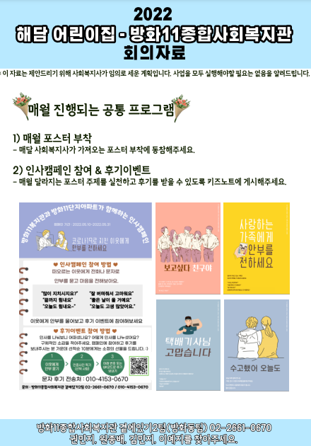 공통인사캠페인으로 포스터를 부착해주시는 해담어린이집 원장님께서 복지관으로 직접 전화를 주셨습니다.