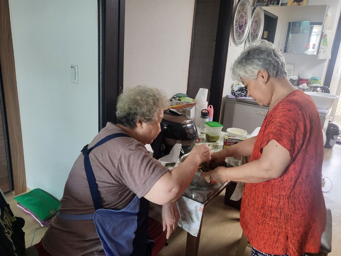 김진순 님 댁에 방문했더니 송복남 어르신과 같이 음식을 준비하고 계셨습니다.