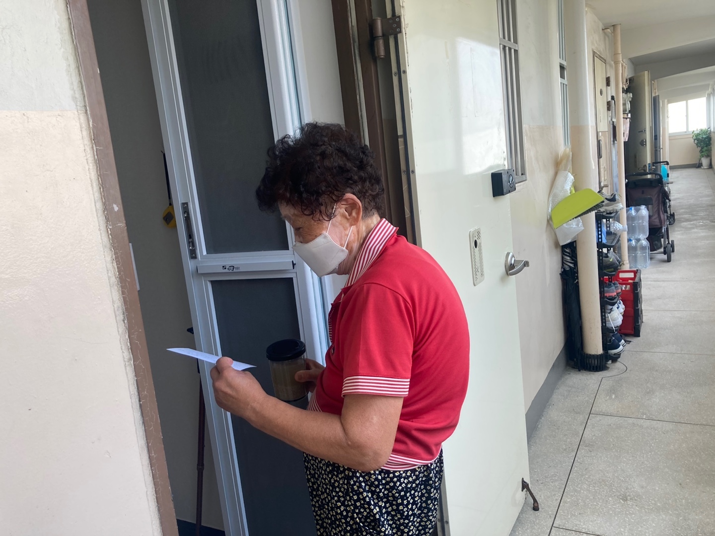 홍 씨 할머니께서 준비한 식혜와 편지를 갖고 10층 신규 입주민 분들을 만났습니다.