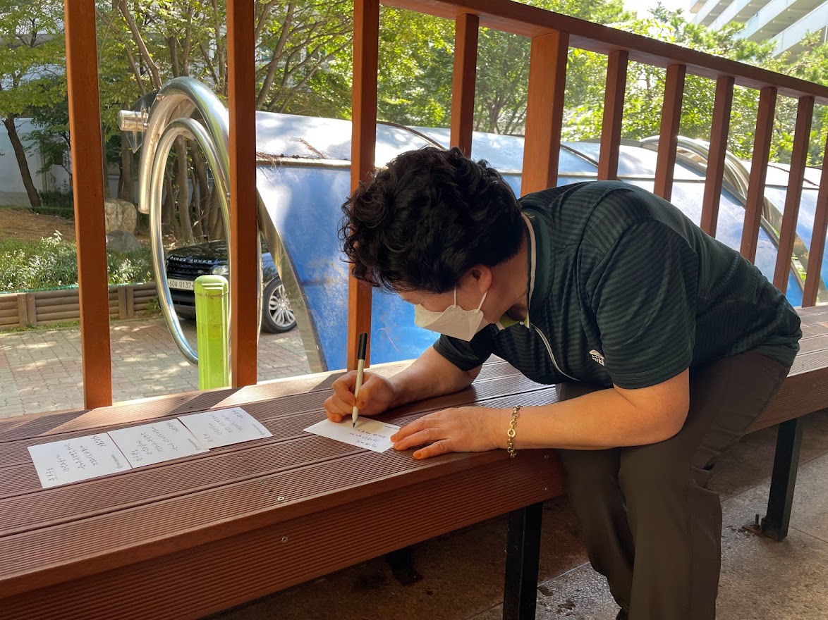 한승미 통장님께서 30통 주민들에게 추석 인사를 전하기 위해 엽서를 쓰셨습니다.